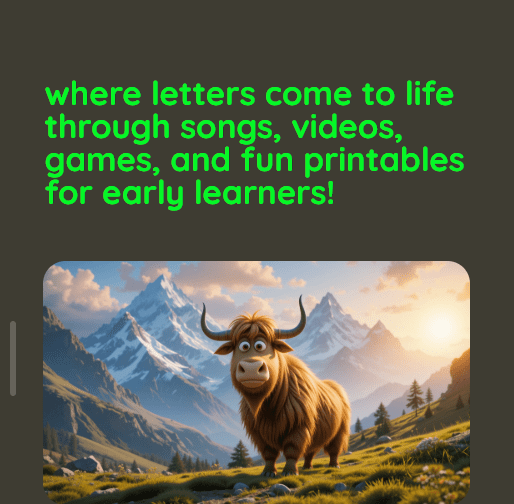where letters come to life through songs, videos, games, and fun printables for early learners!