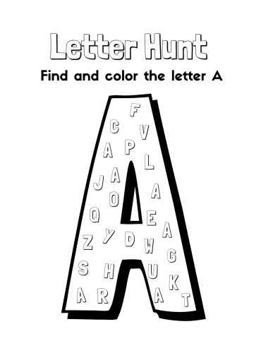 Print this coloring sheet for the letter A.Give children a sheet with the letter A written on it and ask them to draw or color things that start with A.You can also provide stickers or cutouts of A-words to paste on their sheet.