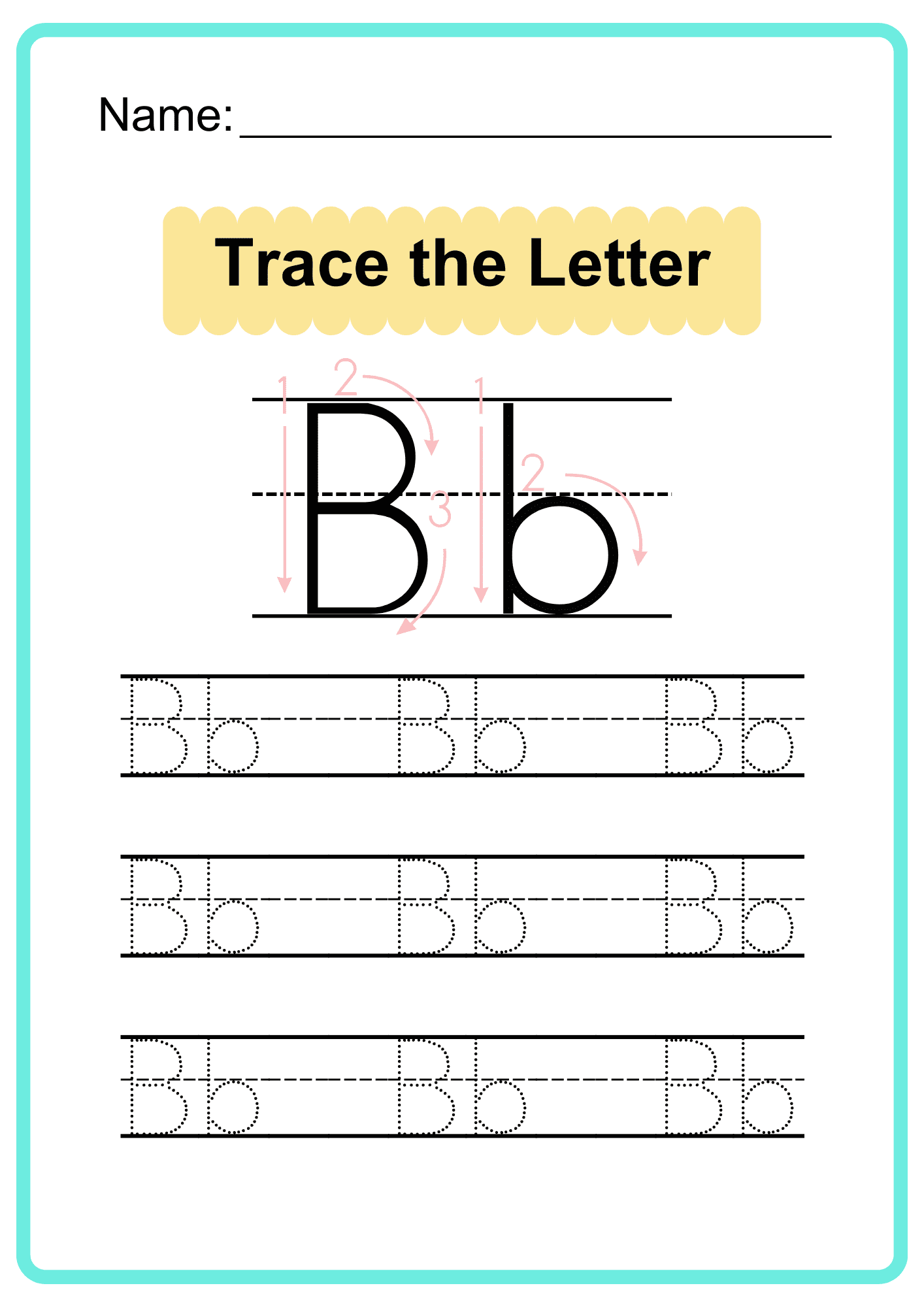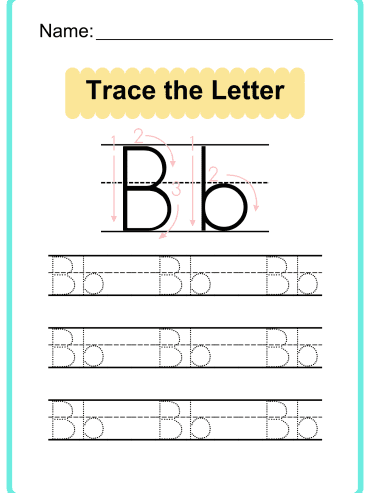 Help young learners explore the alphabet with these free printable worksheets for tracing the letter B. This activity includes both uppercase and lowercase versions of the letter, along with direction arrows reinforce early letter formation.