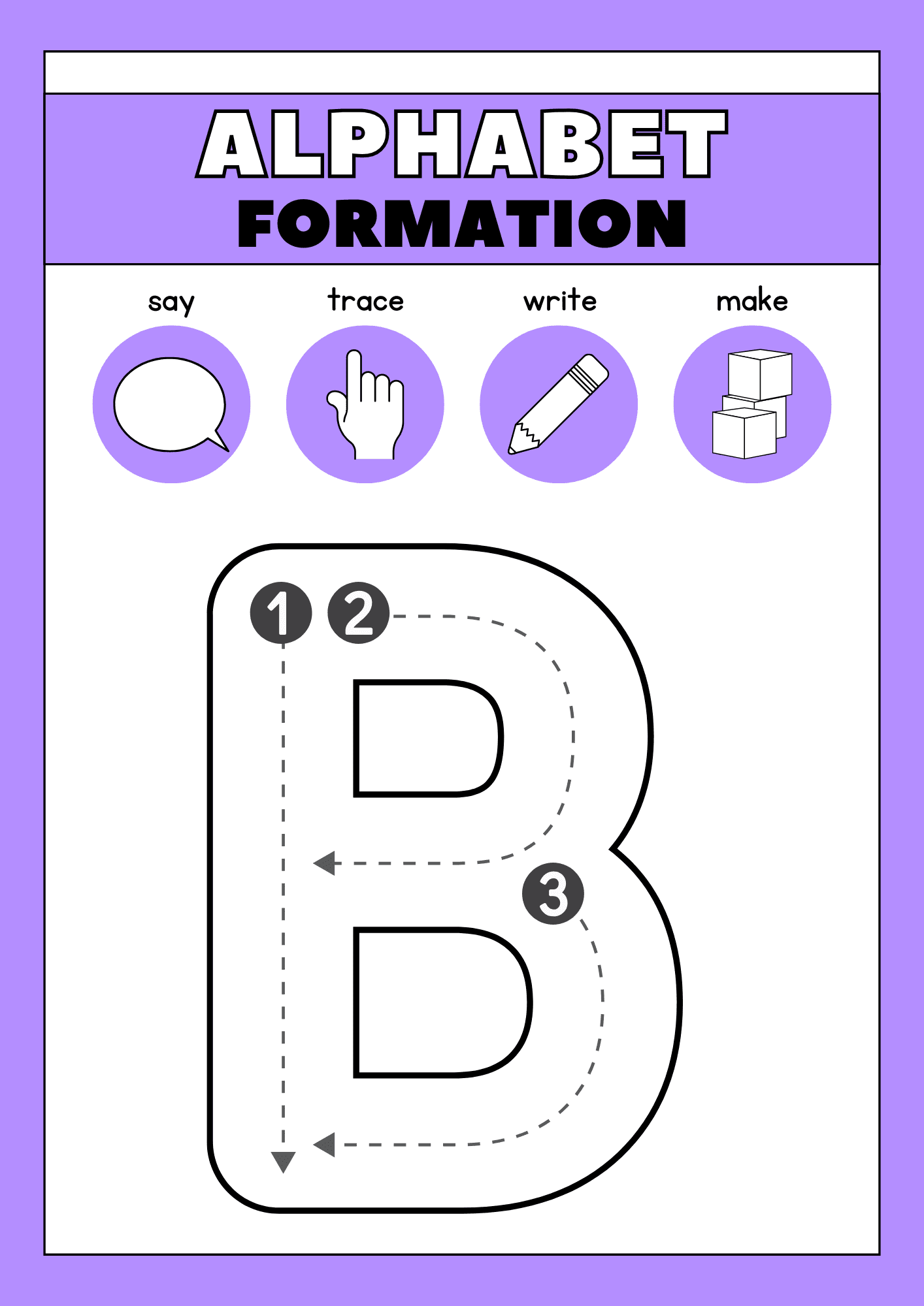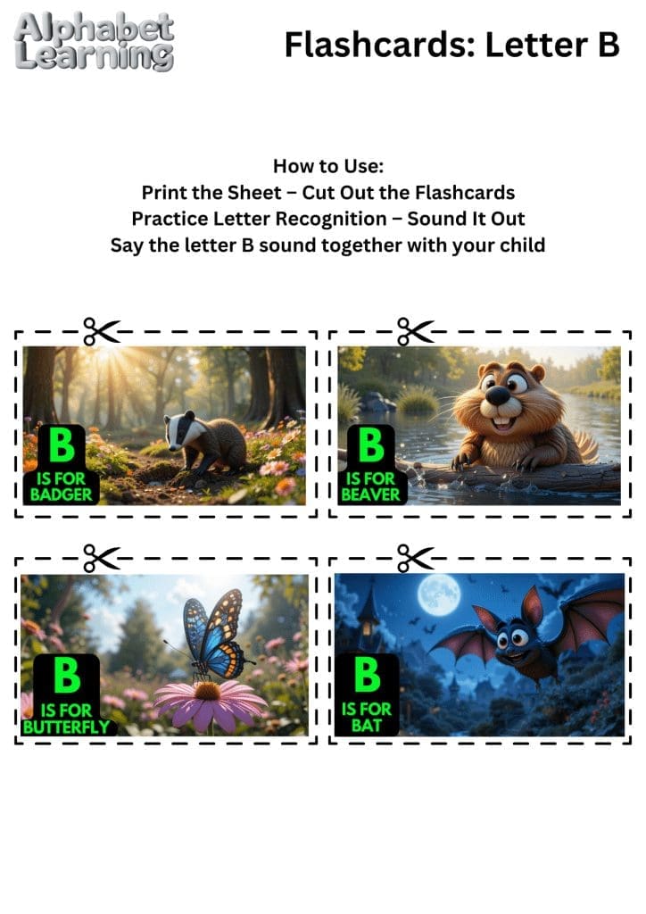 The letter B is the second letter of the alphabet and an important building block for learning to read and write. It is a consonant and can be found in many common words. Recognizing the letter B helps children develop early literacy skills. Let’s explore how B looks, sounds, and where we can find it in everyday life!