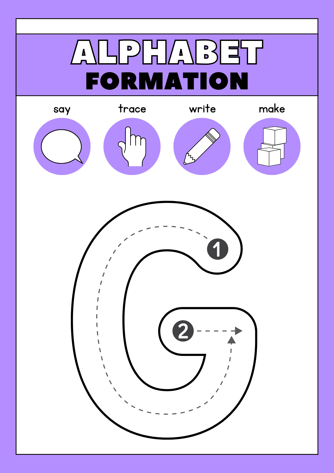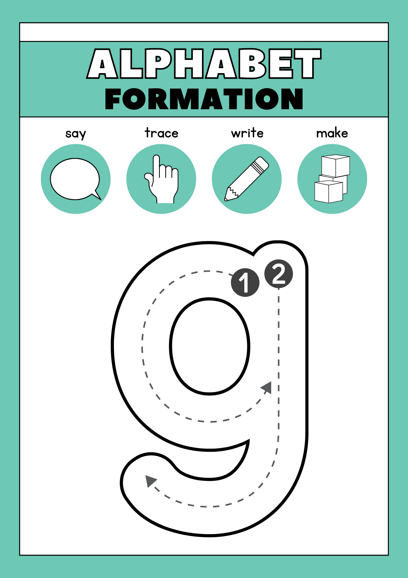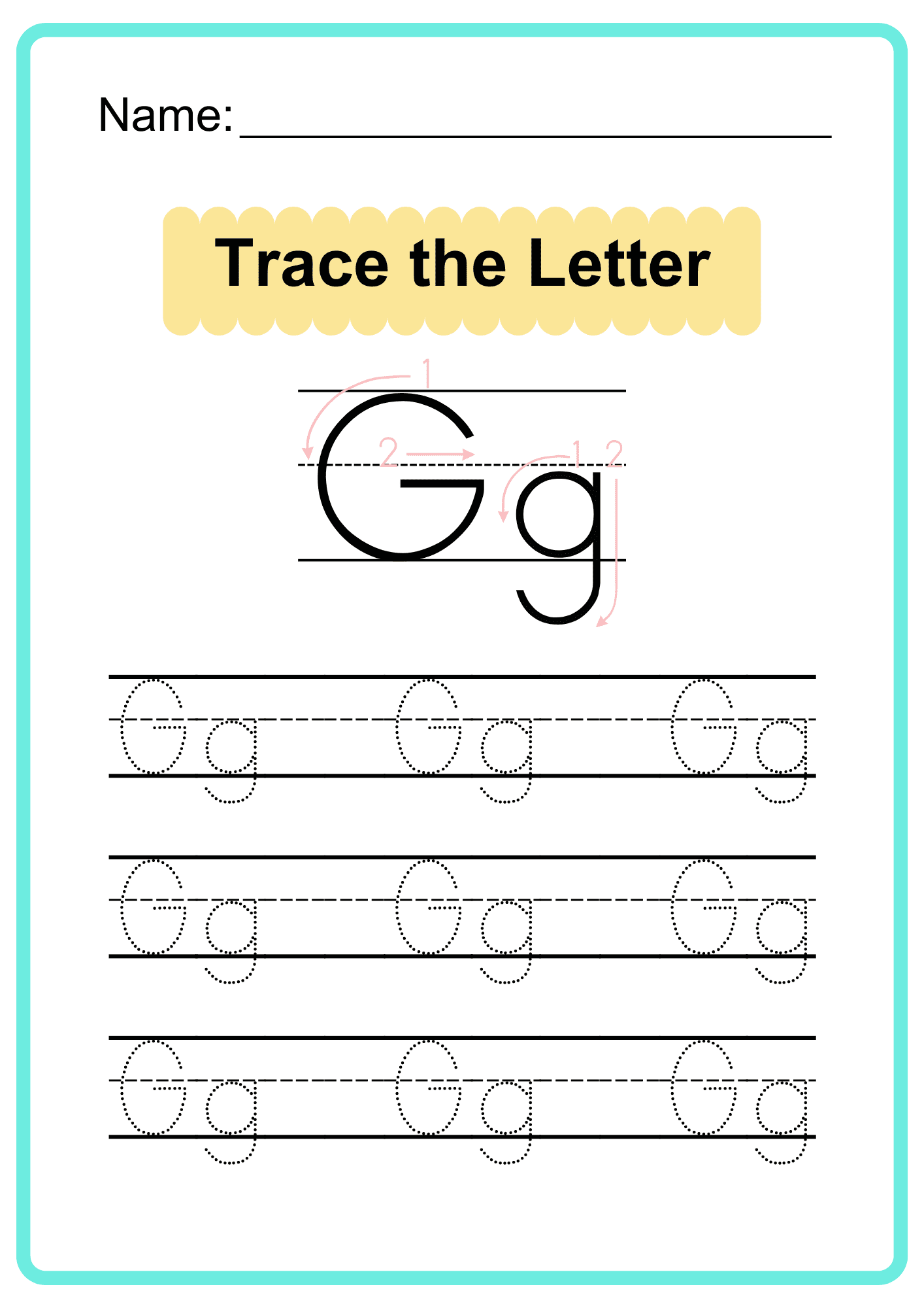 Help young learners explore the alphabet with these free printable worksheets for tracing the letter G. This activity includes both uppercase and lowercase versions of the letter, along with direction arrows reinforce early letter formation.