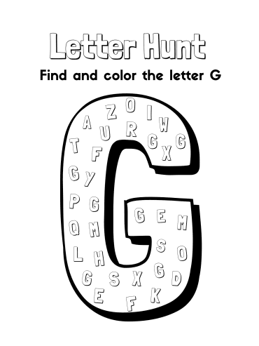 Print this coloring sheet for the letter G. Give children a sheet with the letter G written on it and ask them to draw or color things that start with G. You can also provide stickers or cutouts of G-words to paste on their sheet.