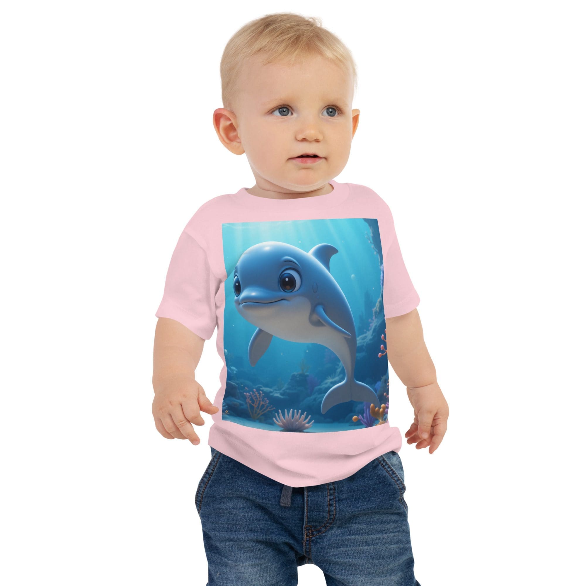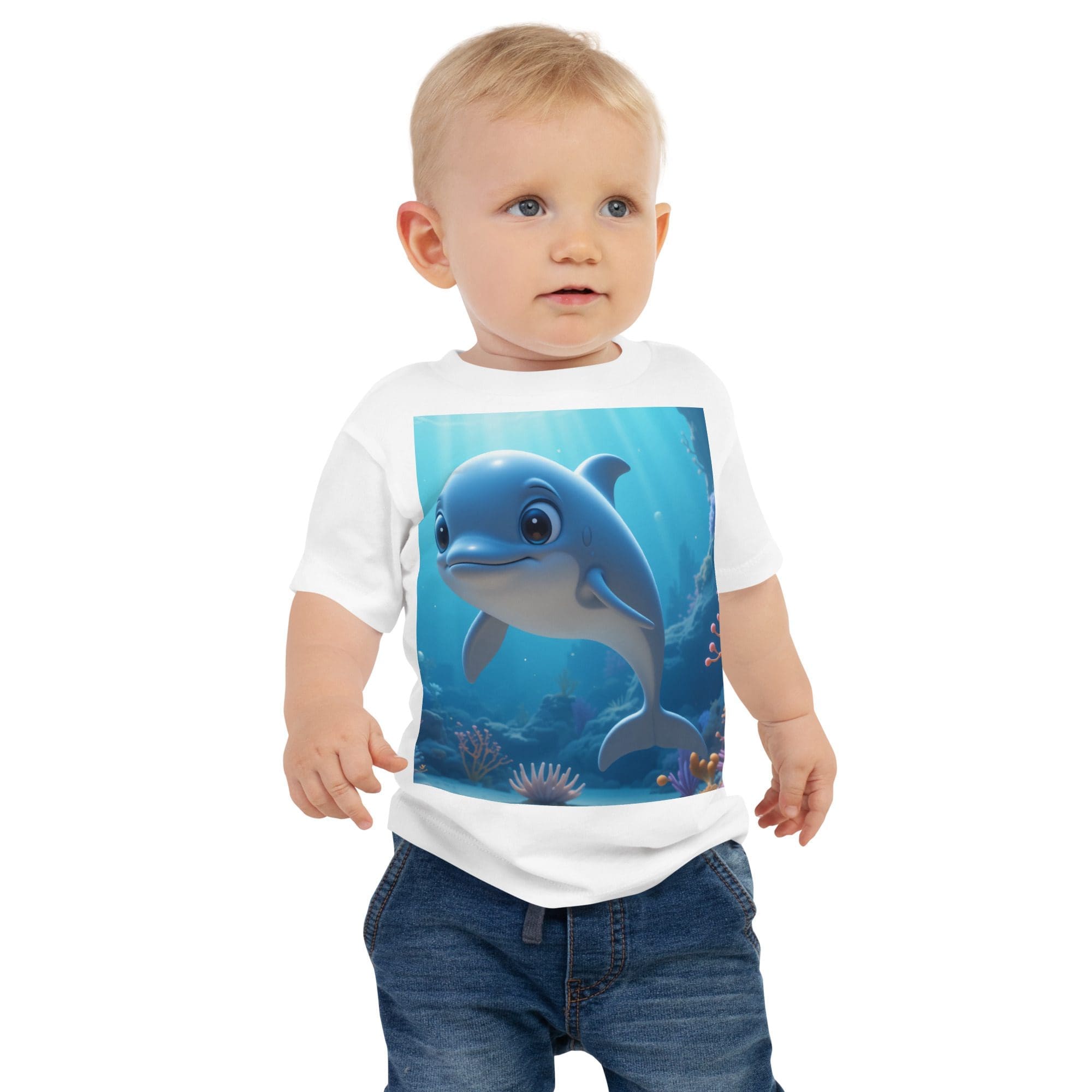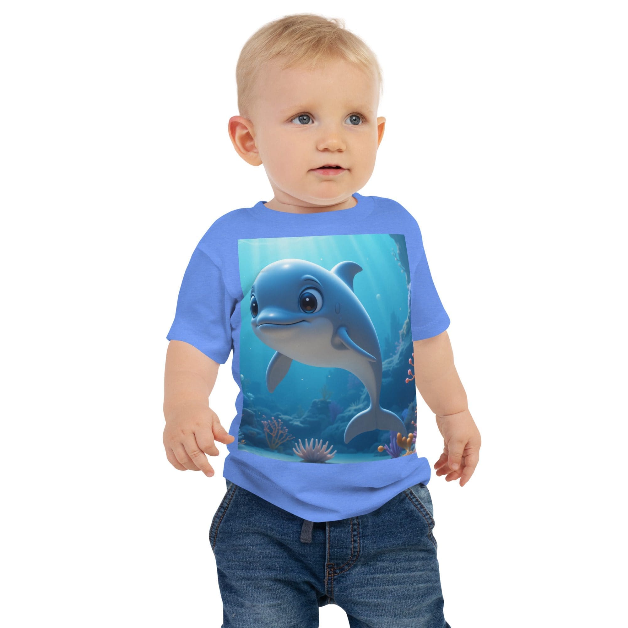 Splash into comfort and joy with our Dolphin-themed Organic Cotton Baby T-Shirt | soft, breathable, and gentle on delicate skin. A thoughtful, eco-friendly gift for growing little ones.
