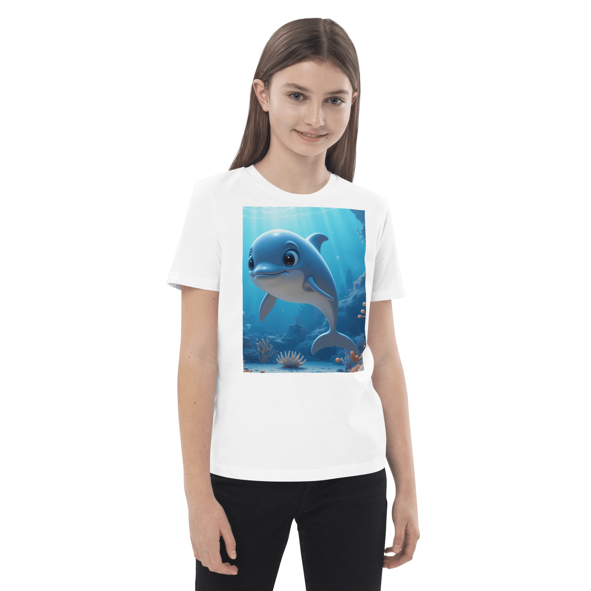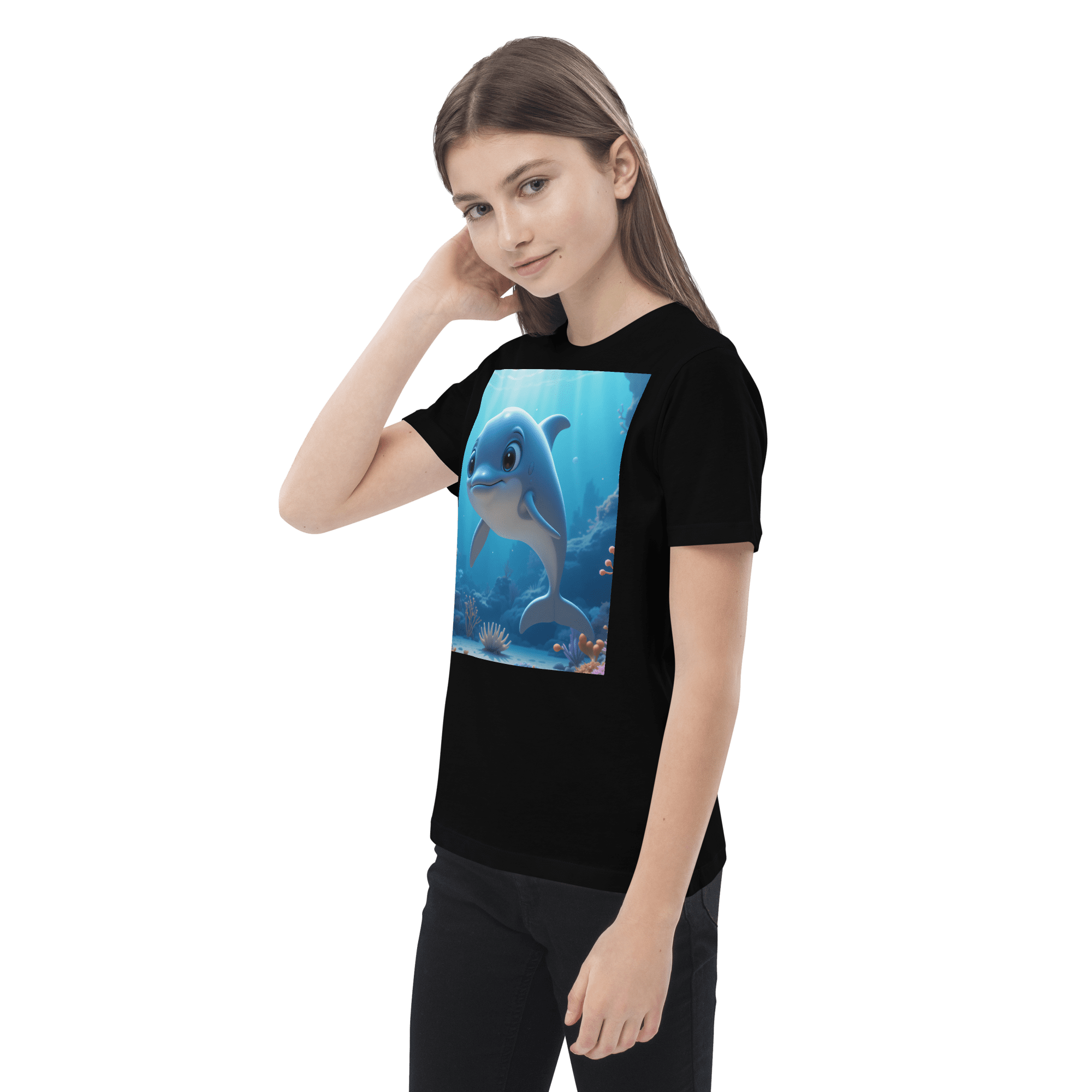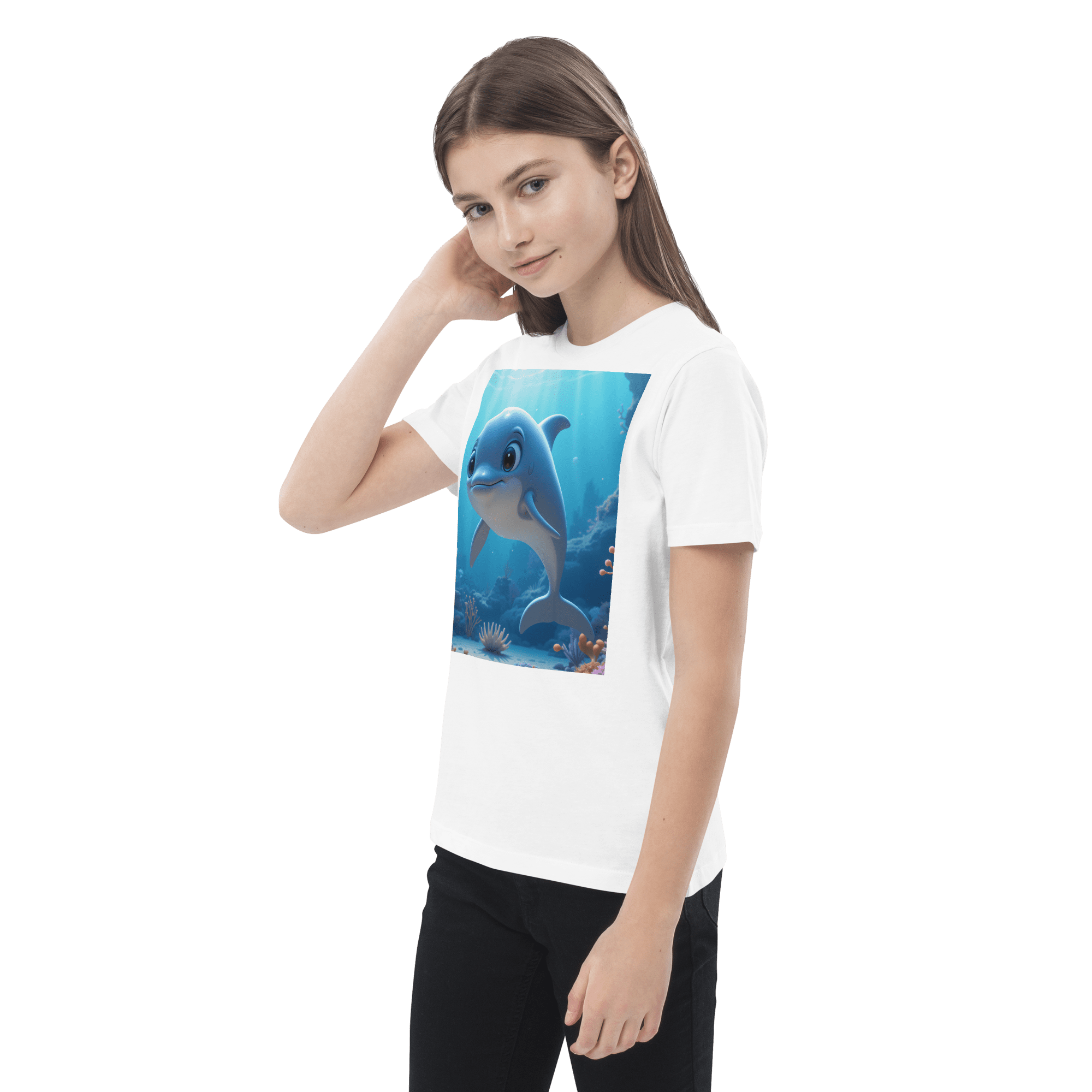 Splash into creativity and confidence with our Dolphin-inspired Organic Cotton Kids T-Shirt | soft, breathable, and perfect for school days, playdates, and weekend fun.