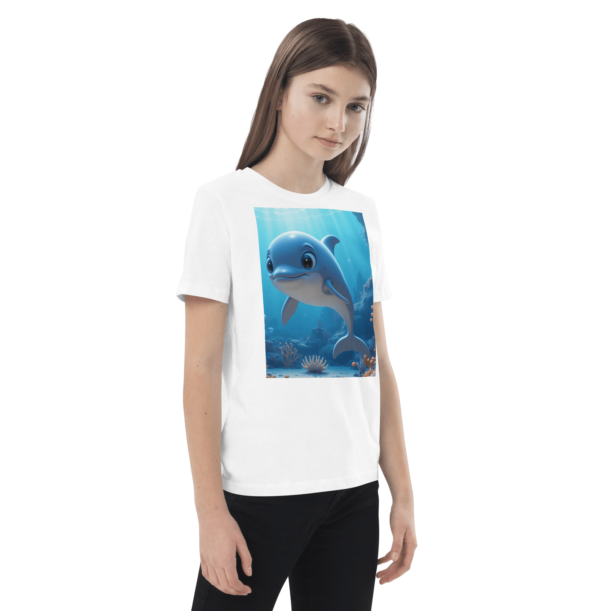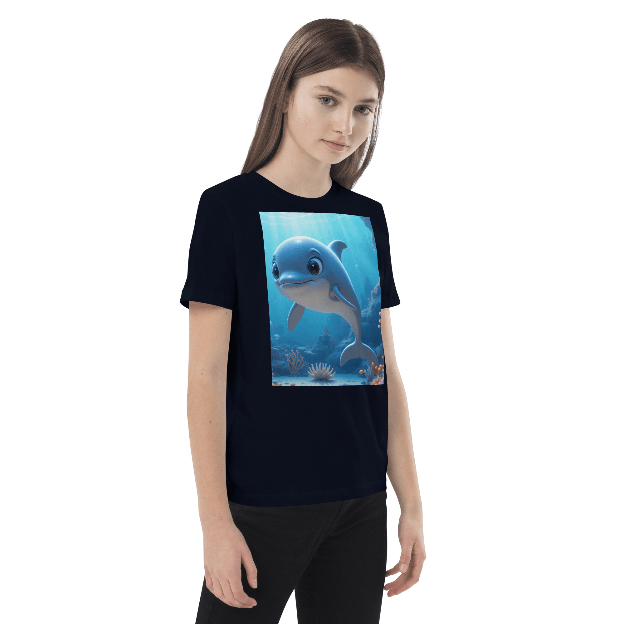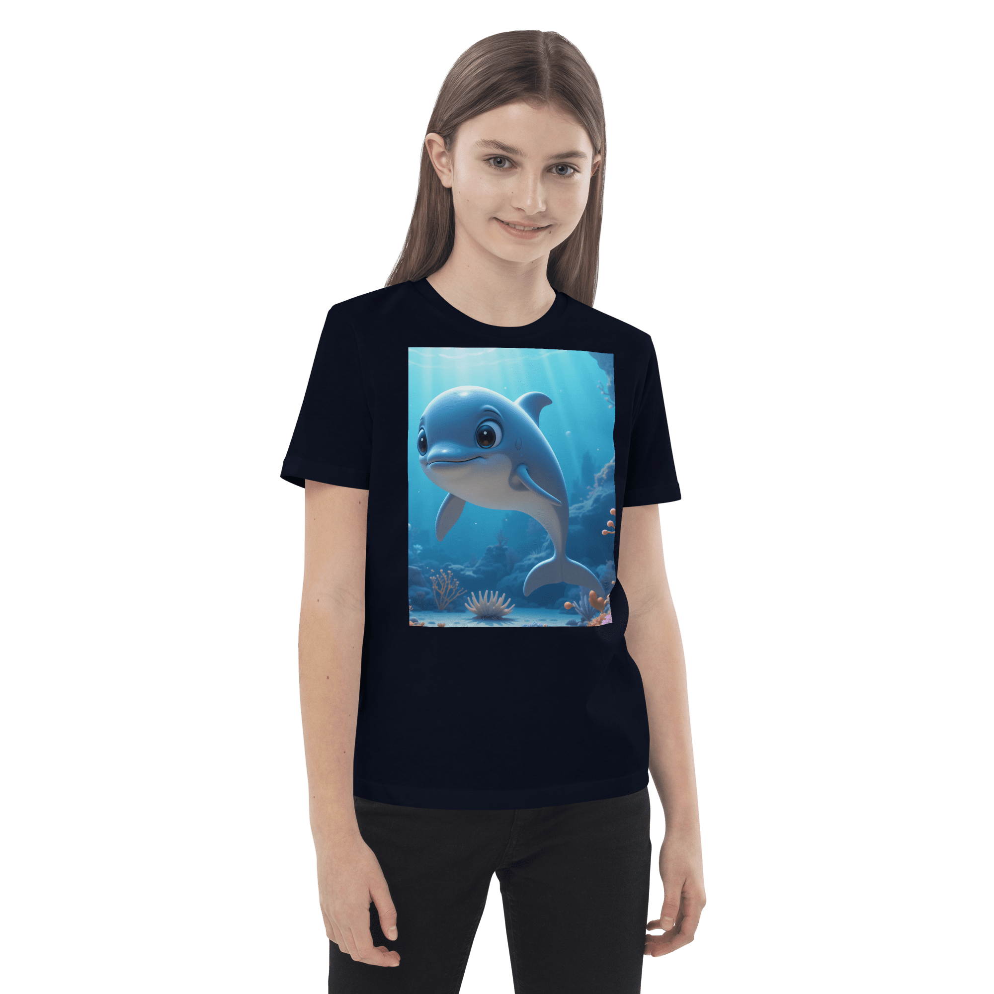 Splash into creativity and confidence with our Dolphin-inspired Organic Cotton Kids T-Shirt | soft, breathable, and perfect for school days, playdates, and weekend fun.