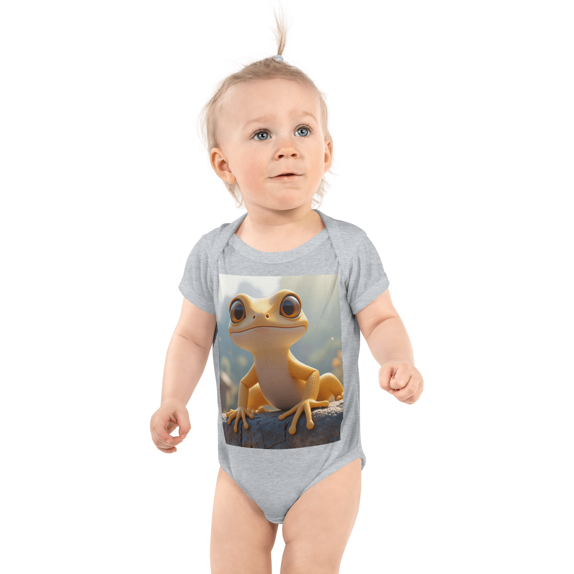 Crawl into adventure with our Gecko-inspired Organic Cotton Bodysuit | crafted from soft, breathable Organic Cotton for newborns to toddlers. Eco-friendly, gift-ready, and a thoughtful baby shower gift.