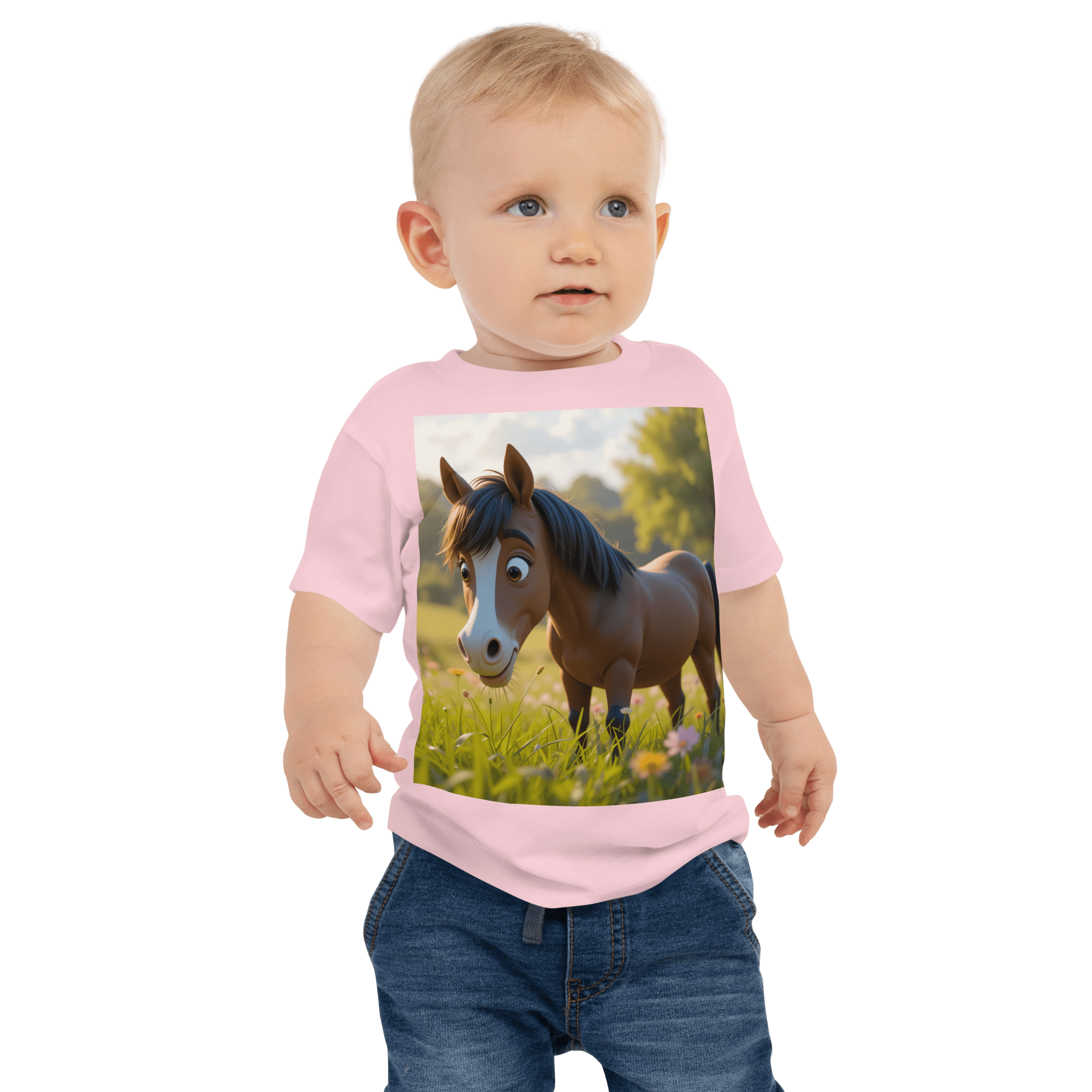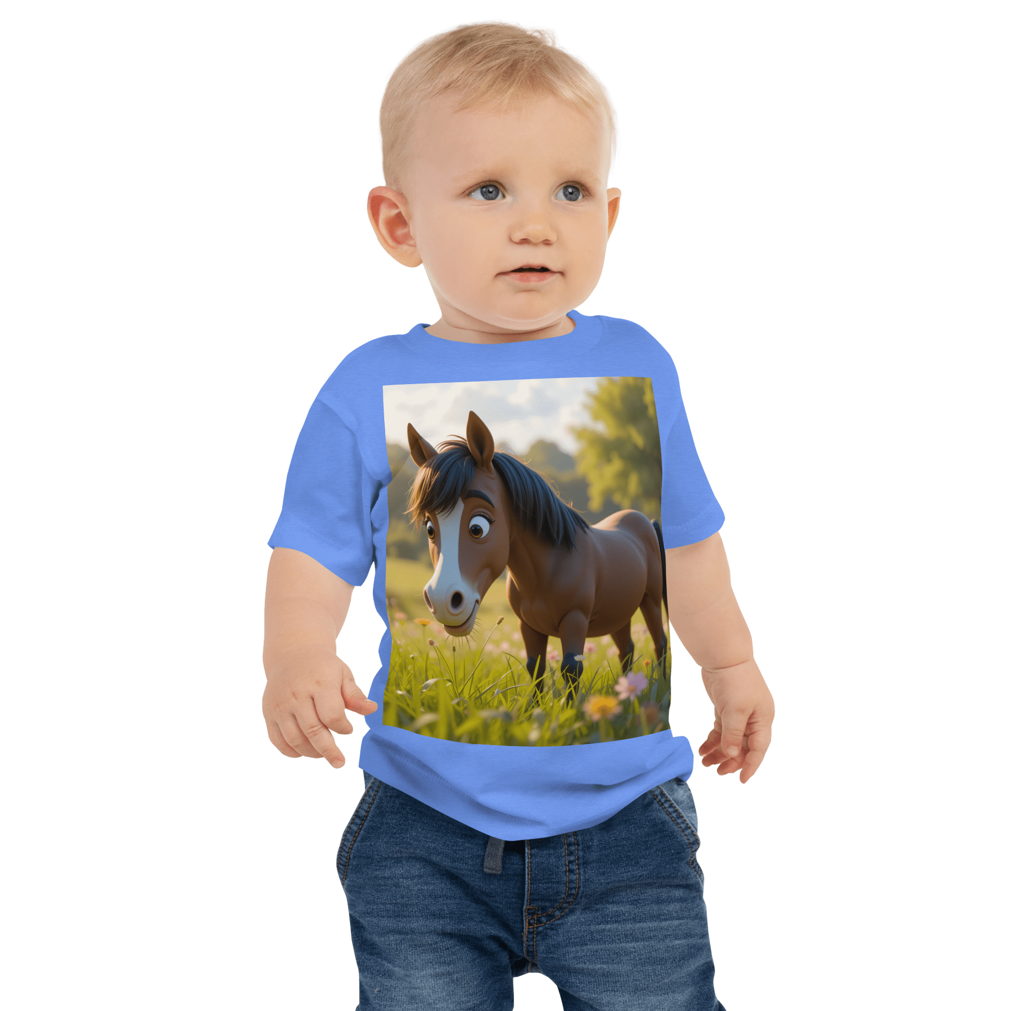 Neigh into comfort and joy with our Horse-themed Organic Cotton Baby T-Shirt | soft, breathable, and gentle on delicate skin. A thoughtful, eco-friendly gift for growing little ones.