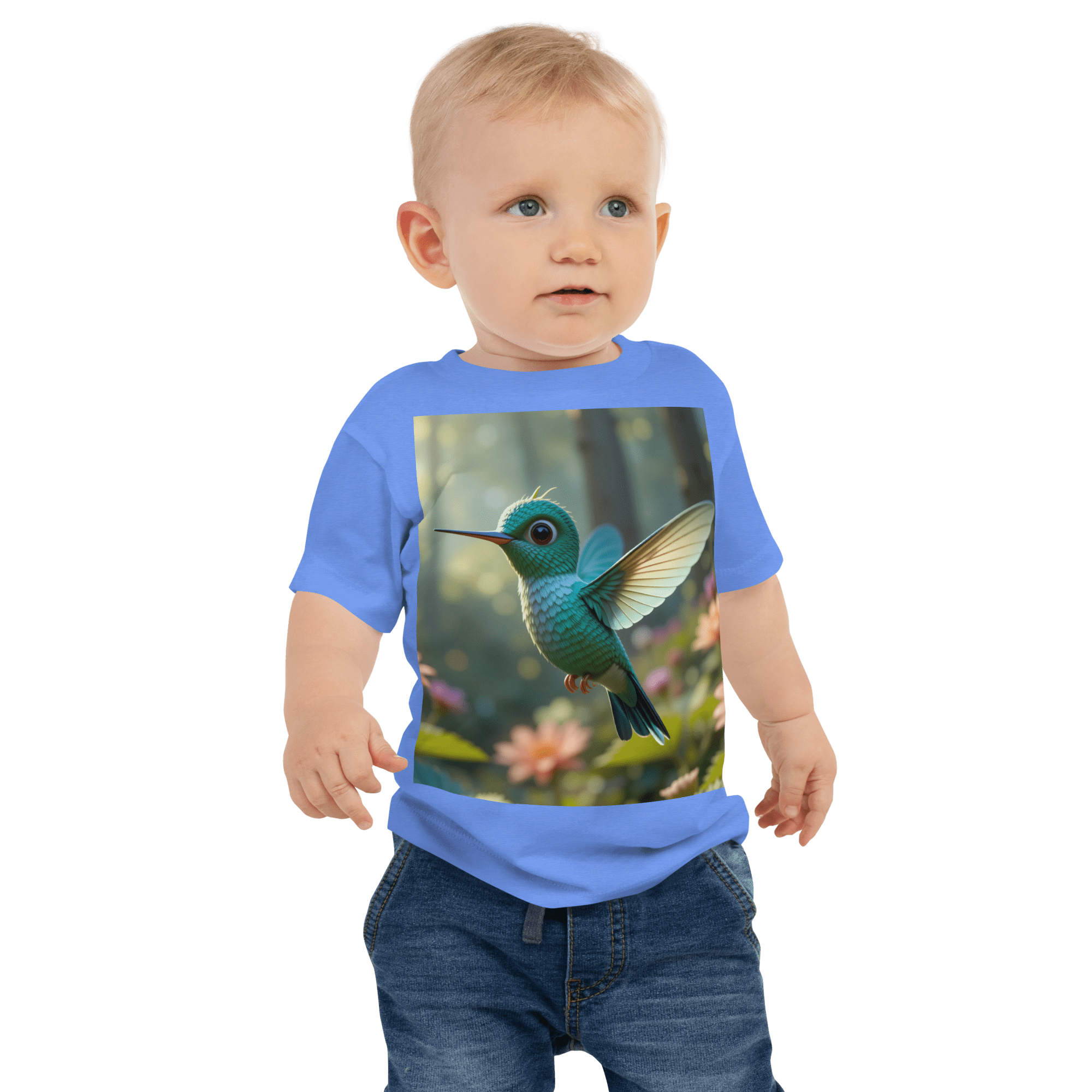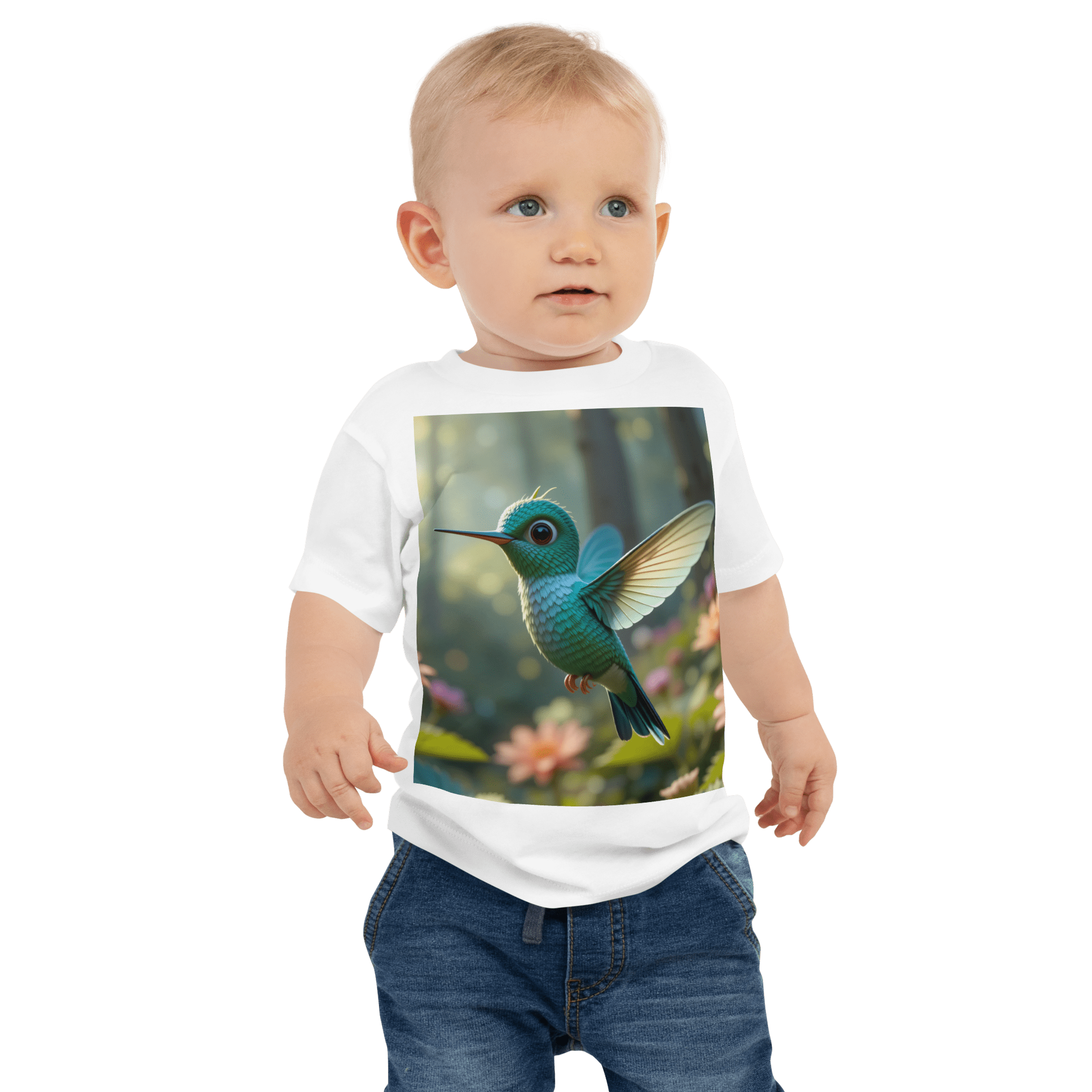 Hover into comfort and joy with our Hummingbird-themed Organic Cotton Baby T-Shirt | soft, breathable, and gentle on delicate skin. A thoughtful, eco-friendly gift for growing little ones.