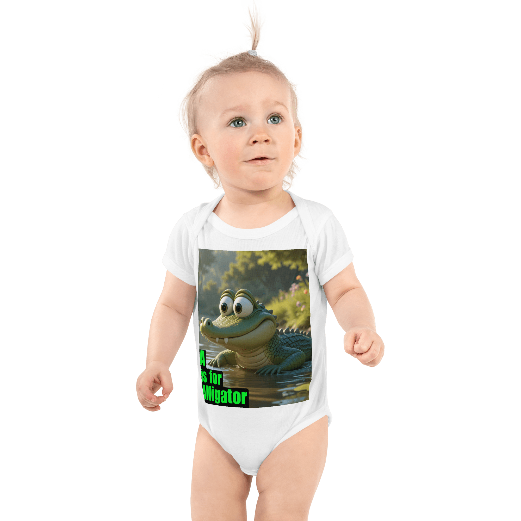 Snap into adventure with our Alligator-inspired Organic Cotton Bodysuit | crafted from soft, breathable Organic Cotton for newborns to toddlers. Eco-friendly, gift-ready, and a thoughtful baby shower gift.