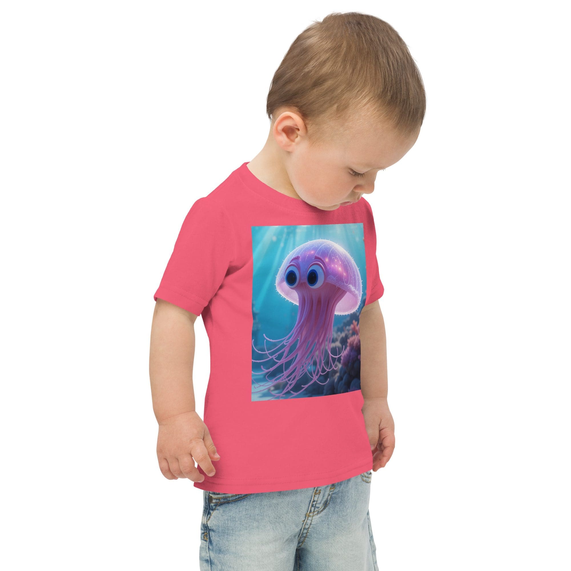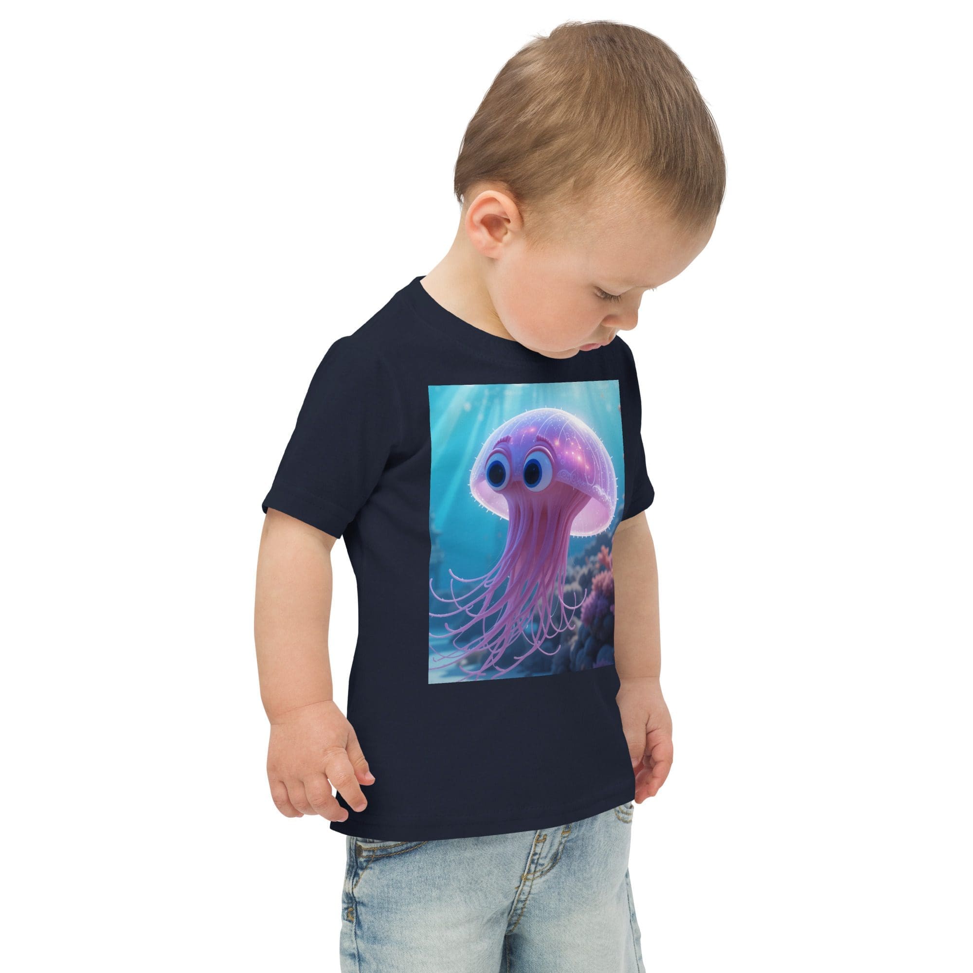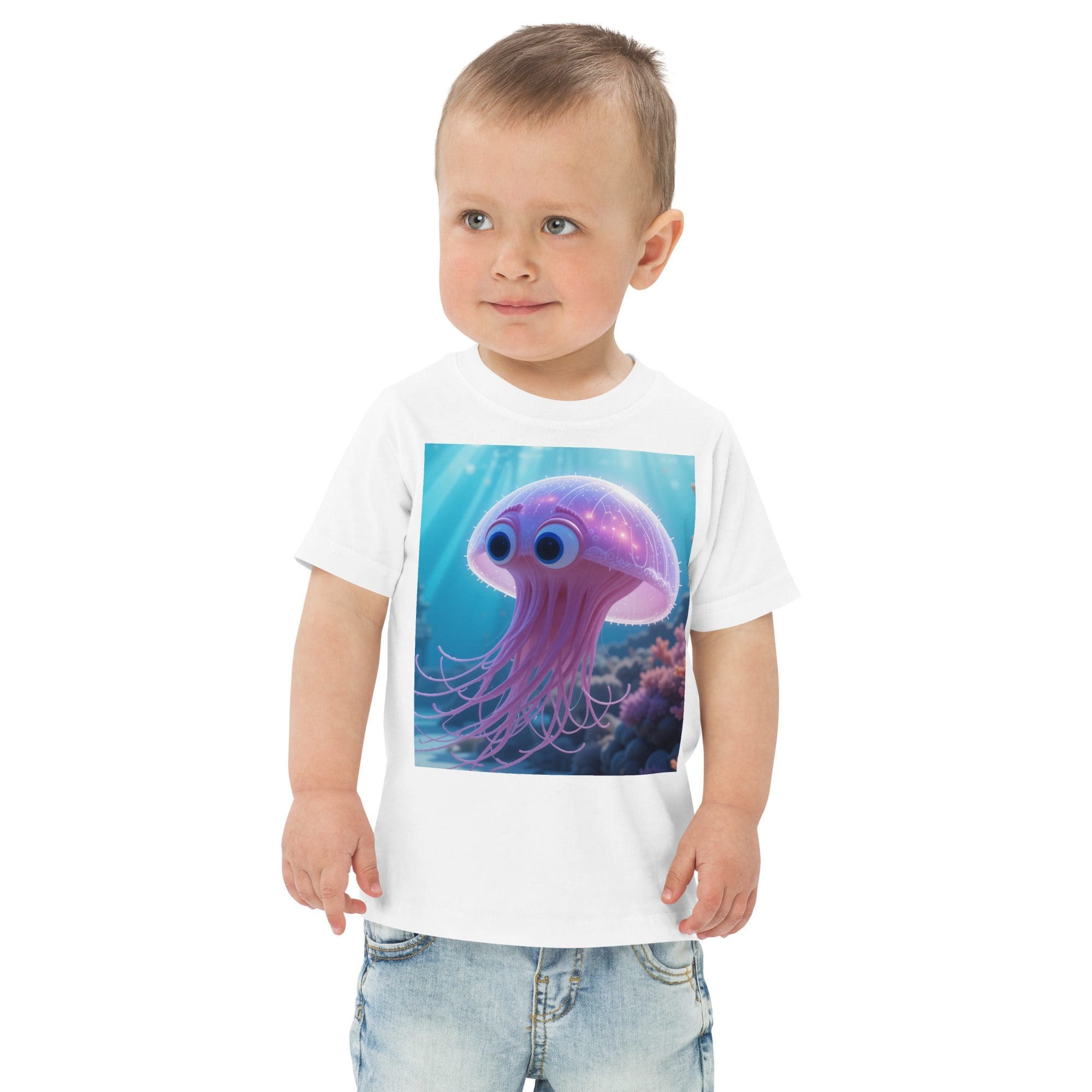 Drift into adventure and discovery with our Jellyfish-inspired Organic Cotton Toddler T-Shirt | playful, durable, and made for park days and big imaginations.