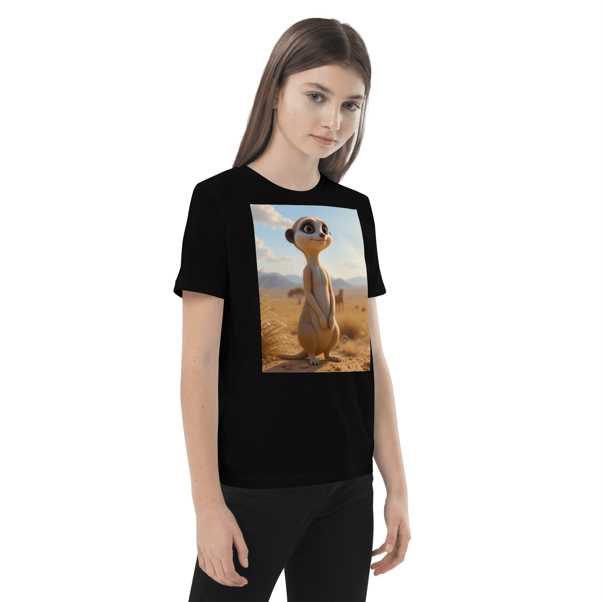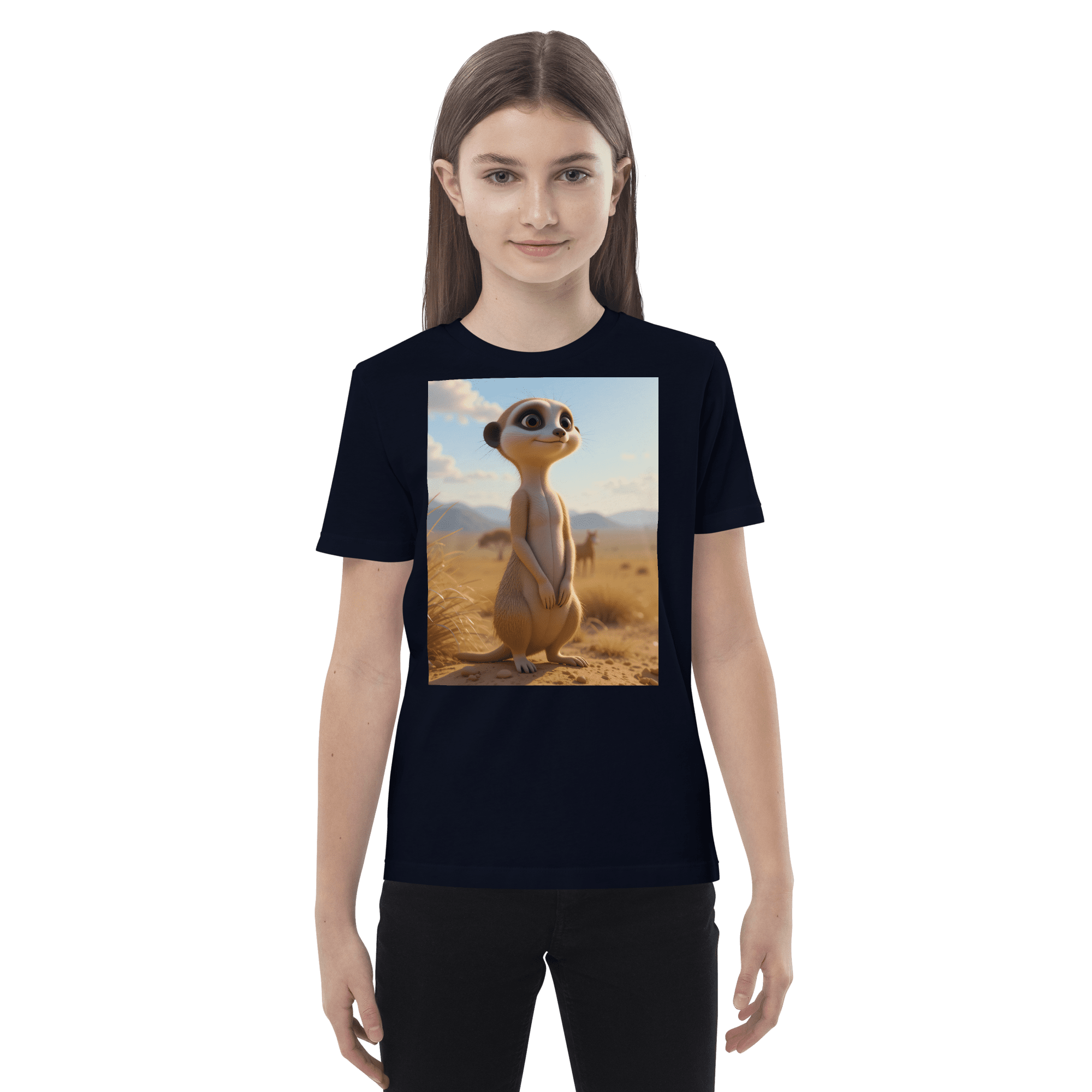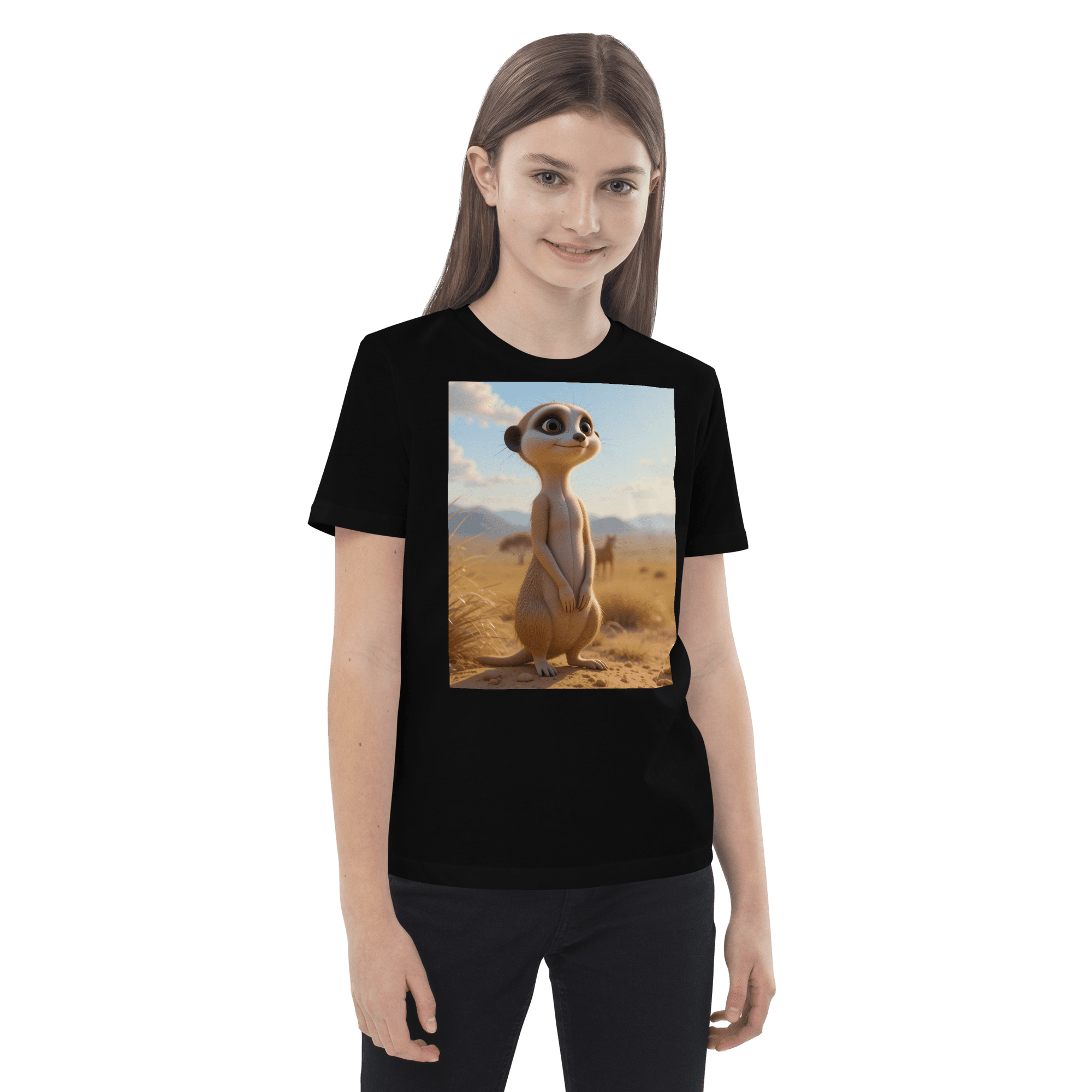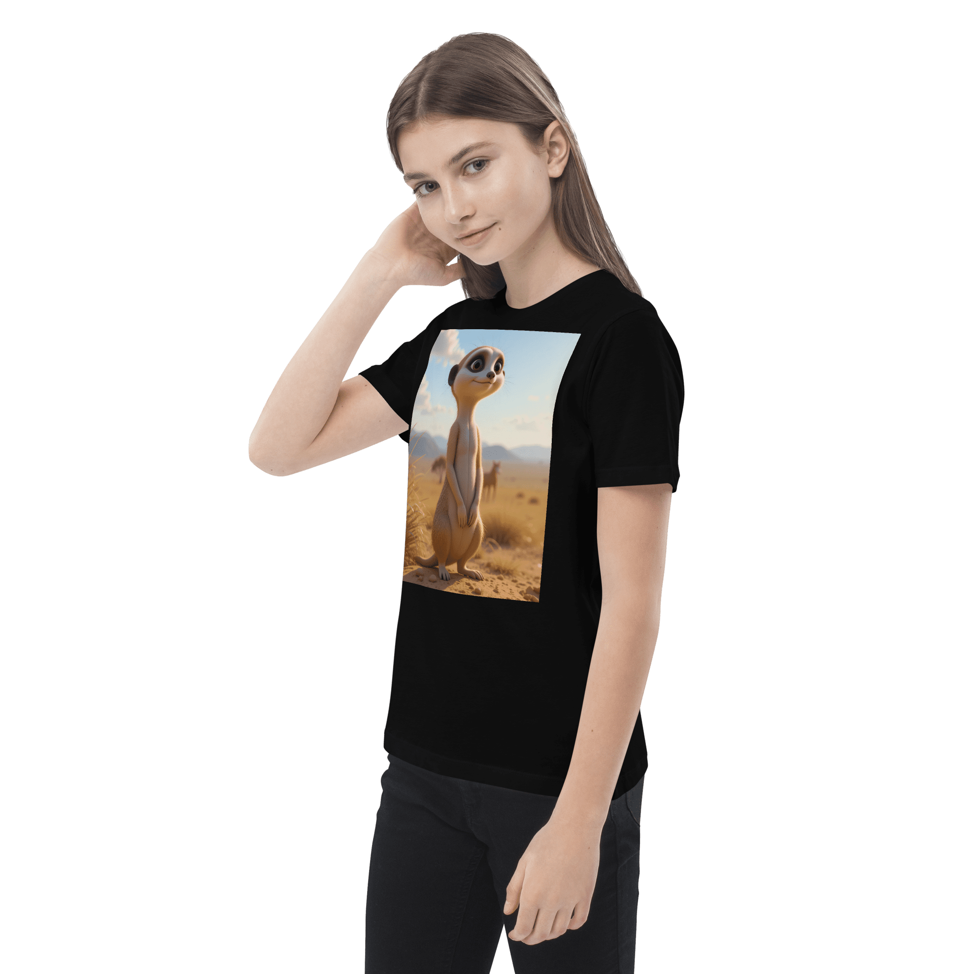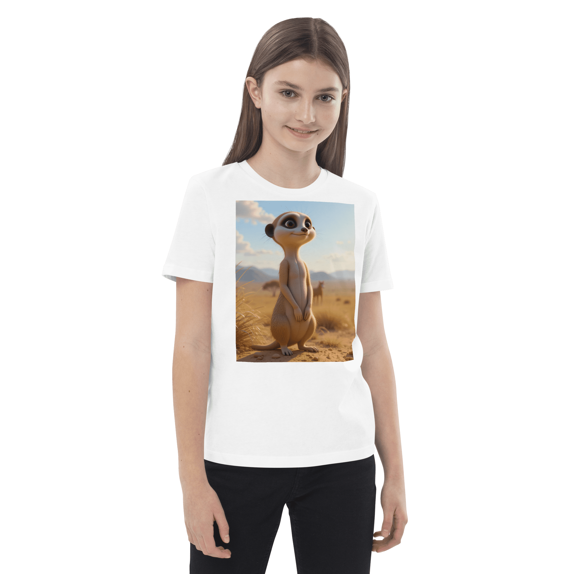 Peek into creativity and confidence with our Meerkat-inspired Organic Cotton Kids T-Shirt | soft, breathable, and perfect for school days, playdates, and weekend fun.