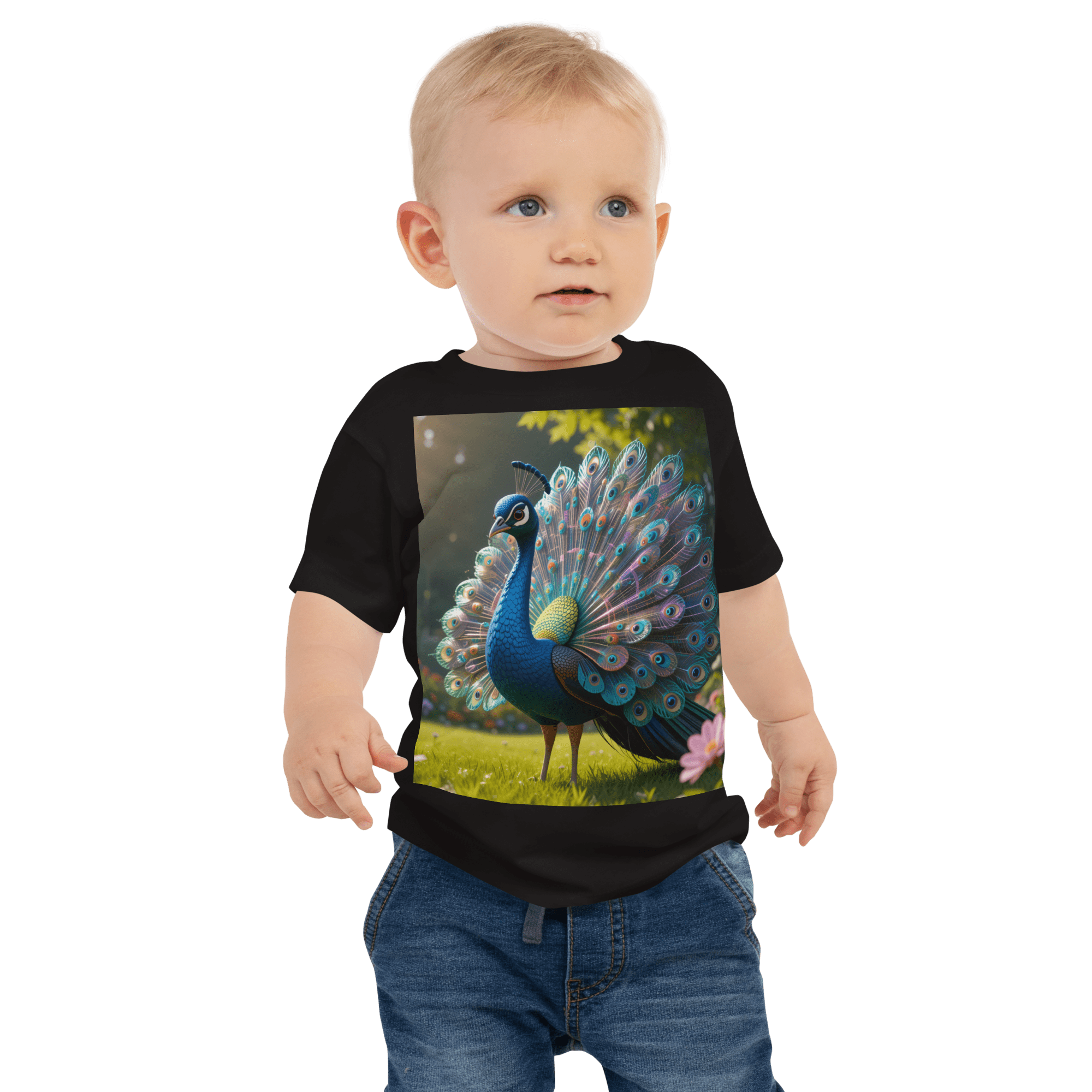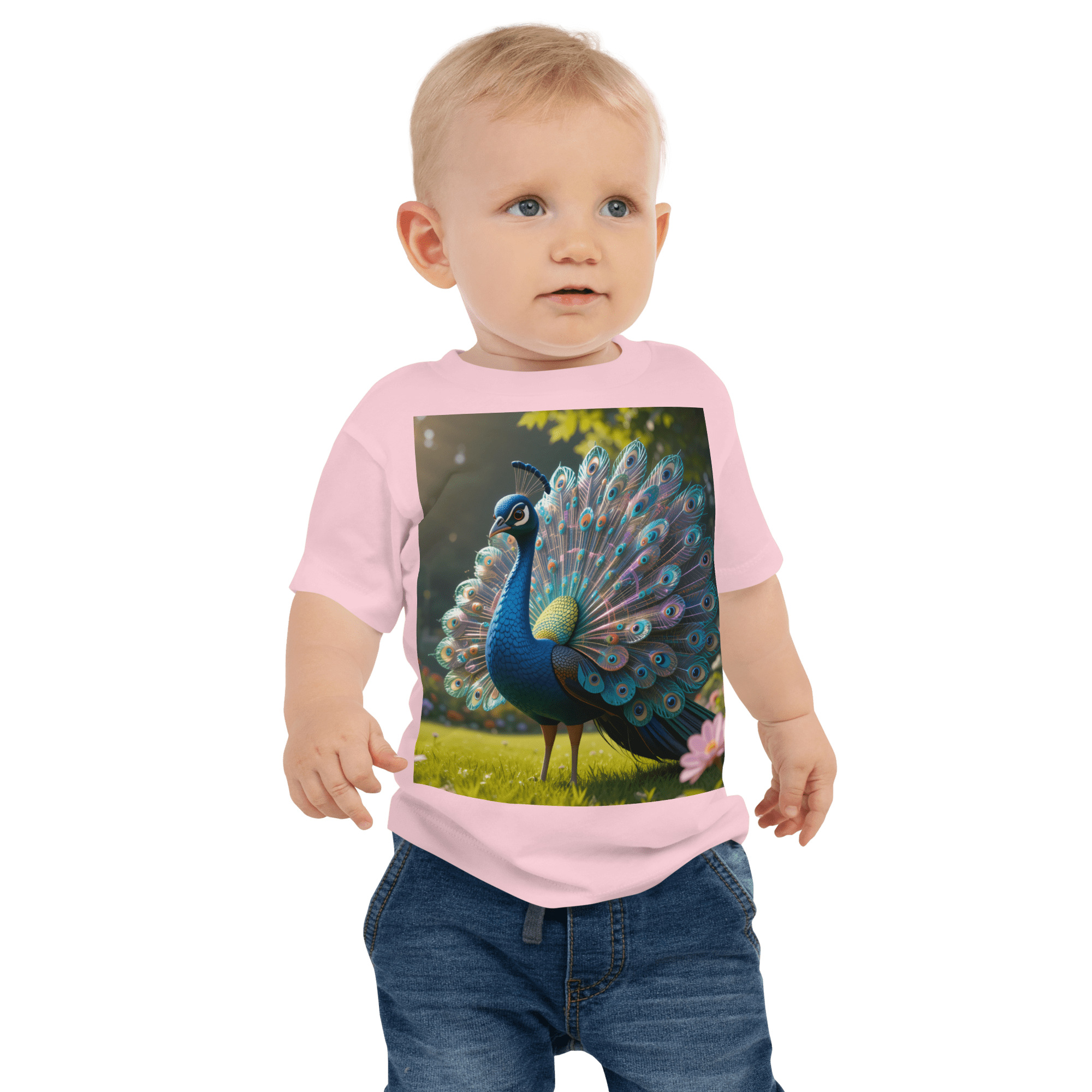 Shine into comfort and joy with our Peacock-themed Organic Cotton Baby T-Shirt | soft, breathable, and gentle on delicate skin. A thoughtful, eco-friendly gift for growing little ones.