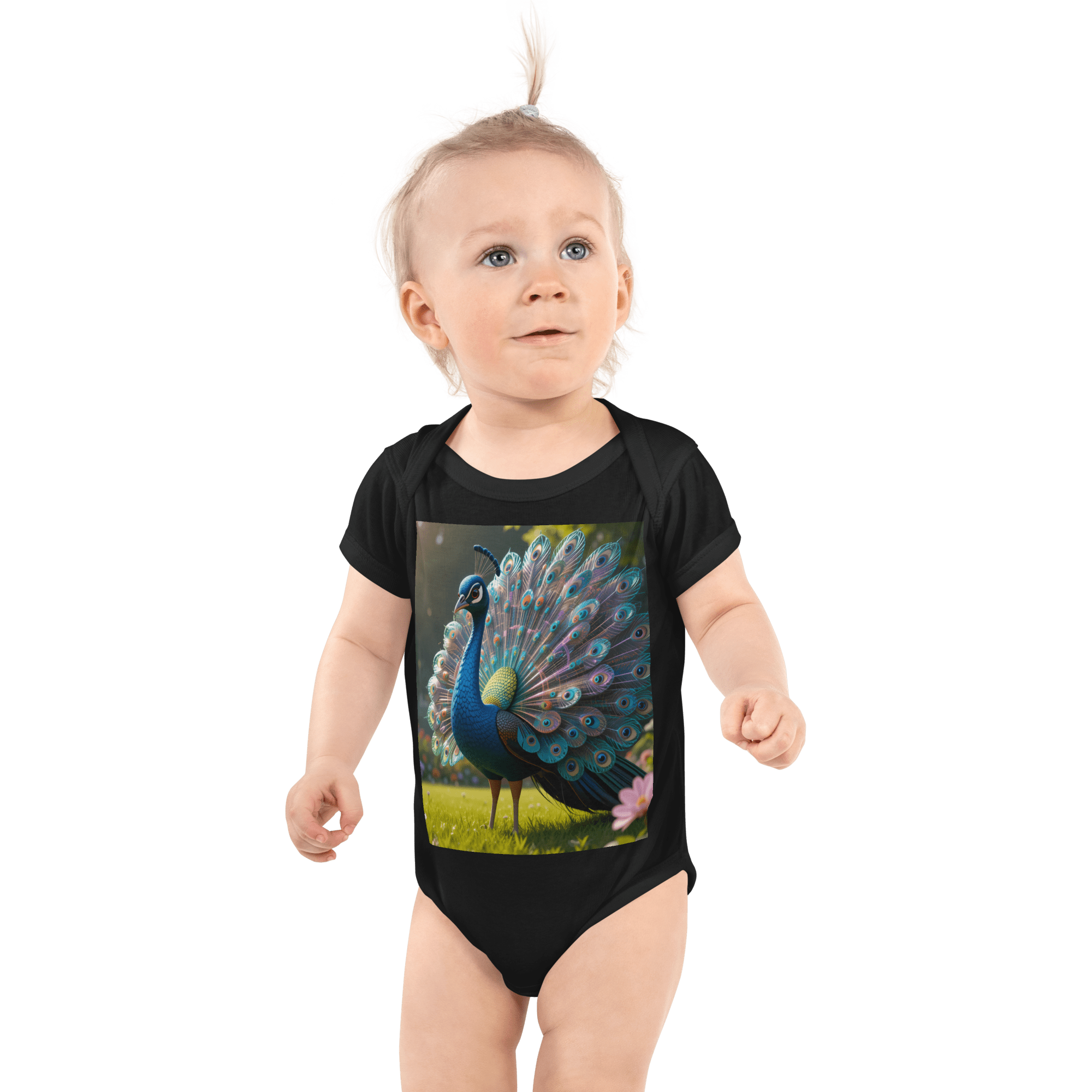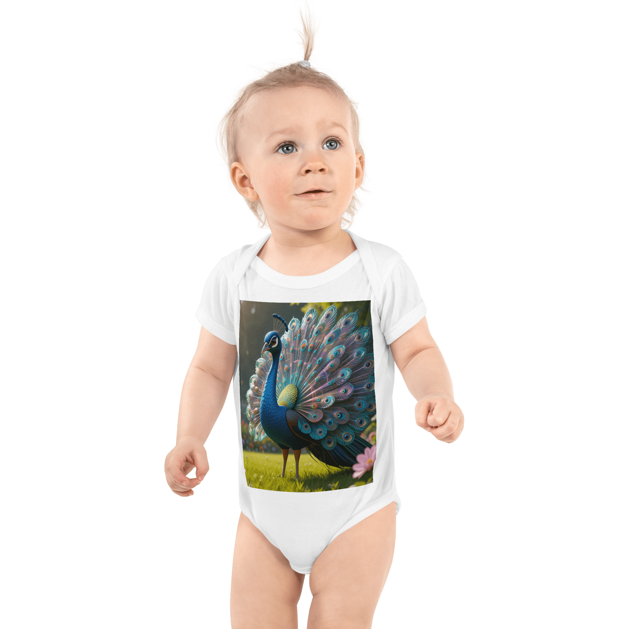 Shine into adventure with our Peacock-inspired Organic Cotton Bodysuit | crafted from soft, breathable Organic Cotton for newborns to toddlers. Eco-friendly, gift-ready, and a thoughtful baby shower gift.