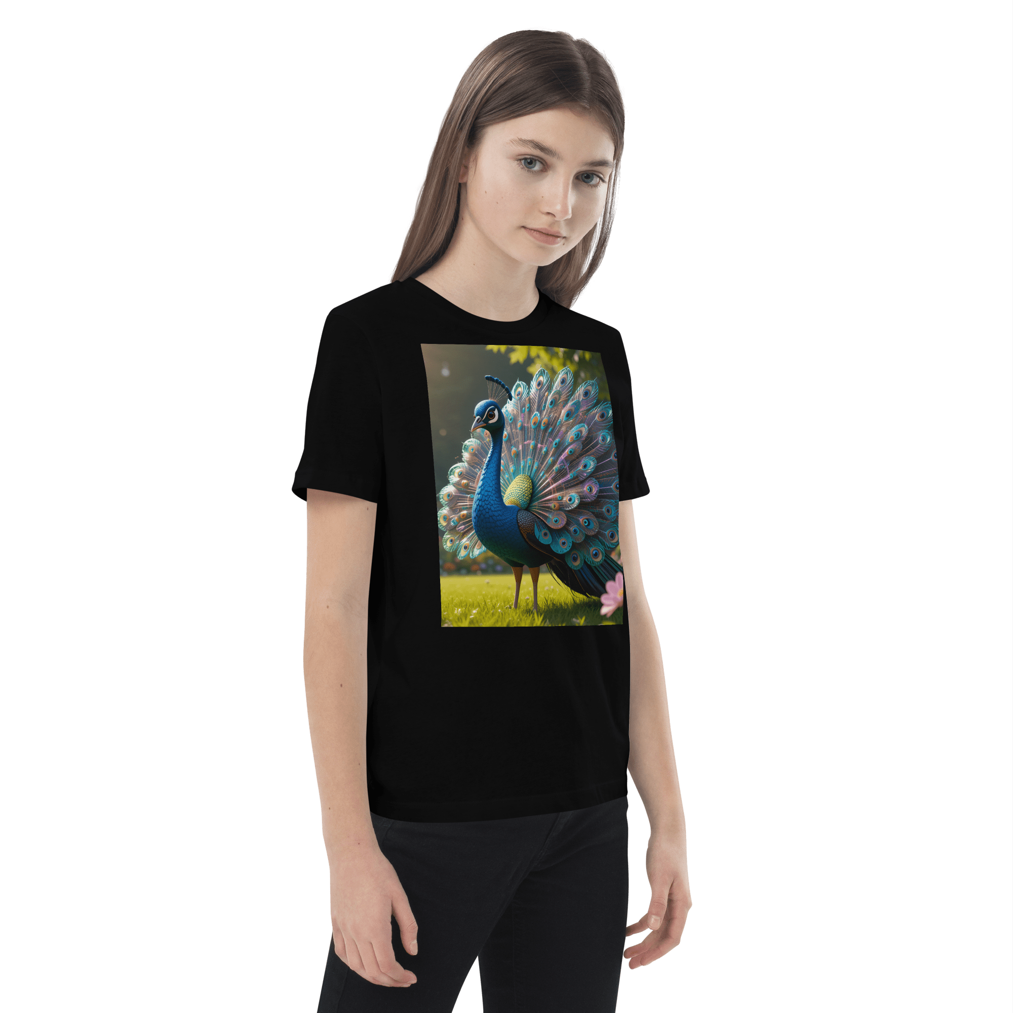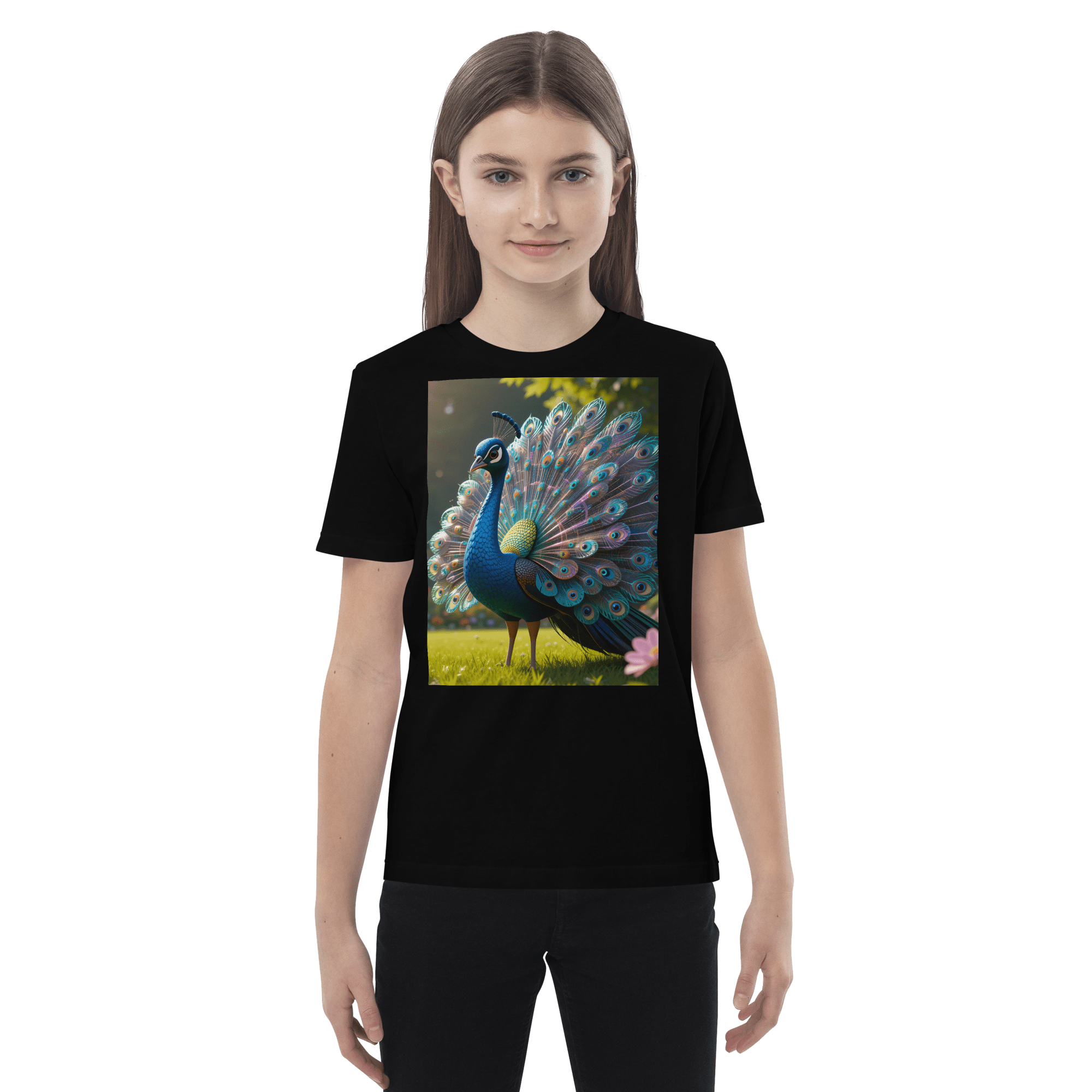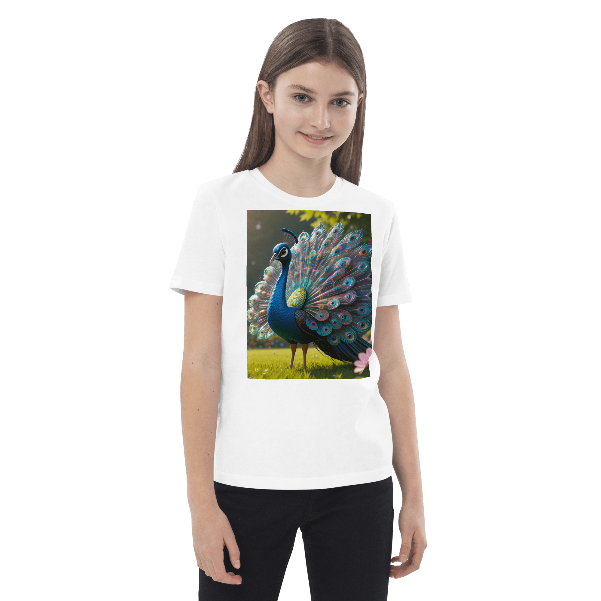 Shine into creativity and confidence with our Peacock-inspired Organic Cotton Kids T-Shirt | soft, breathable, and perfect for school days, playdates, and weekend fun.