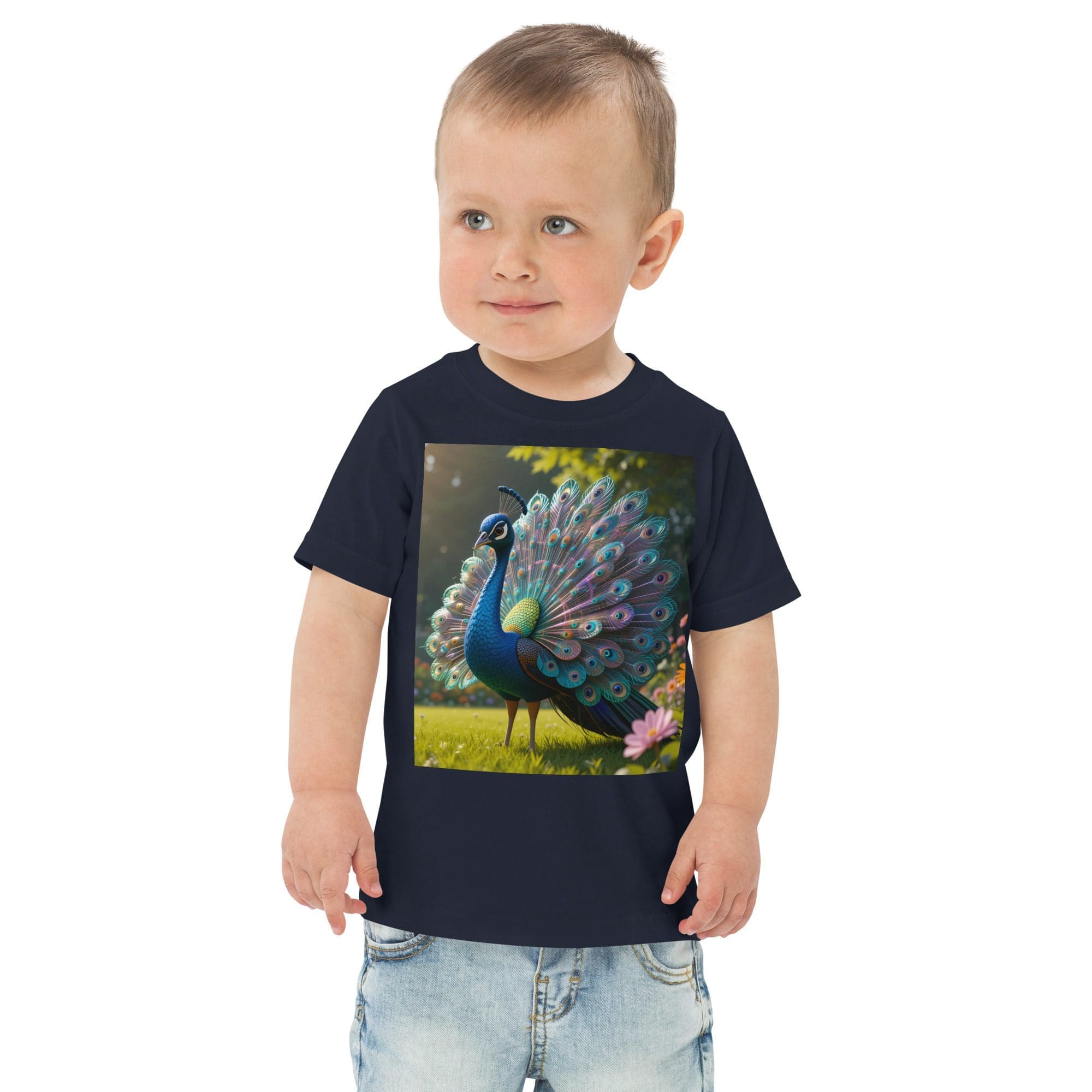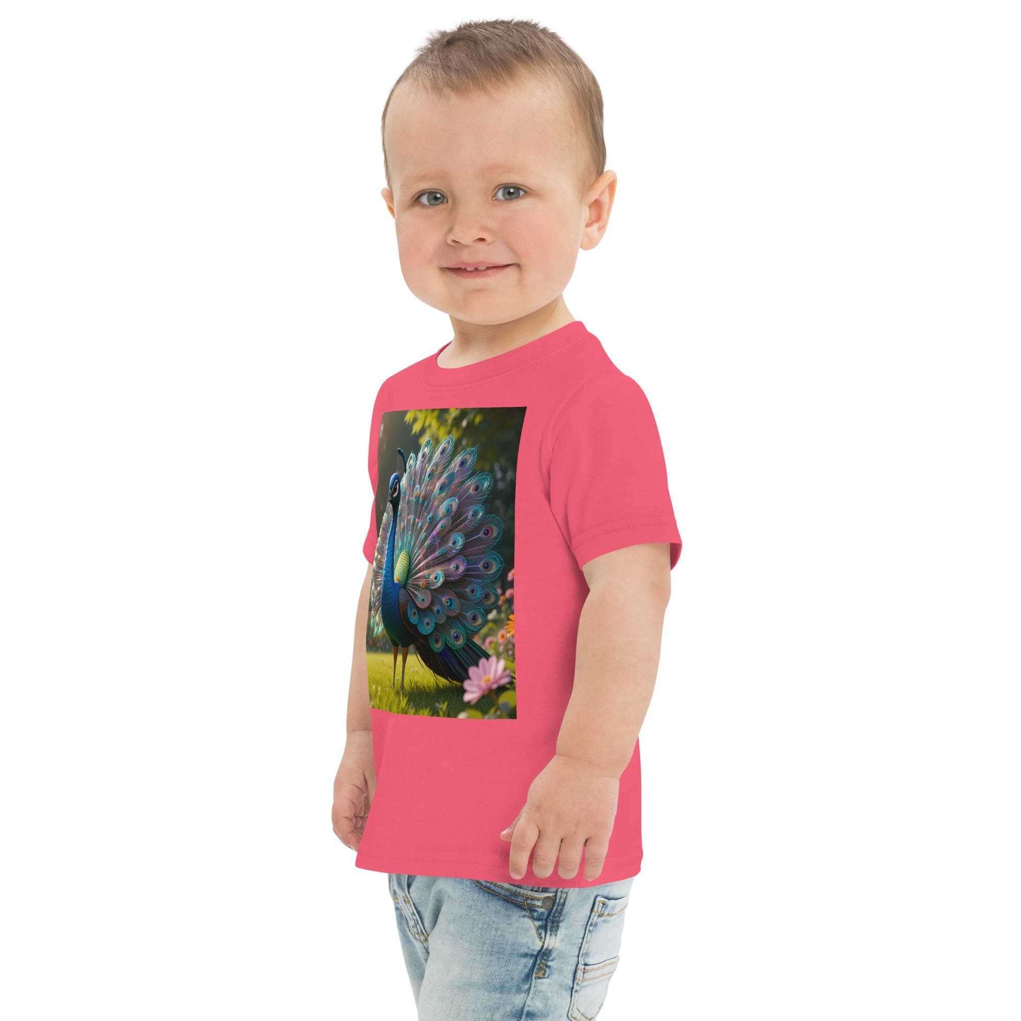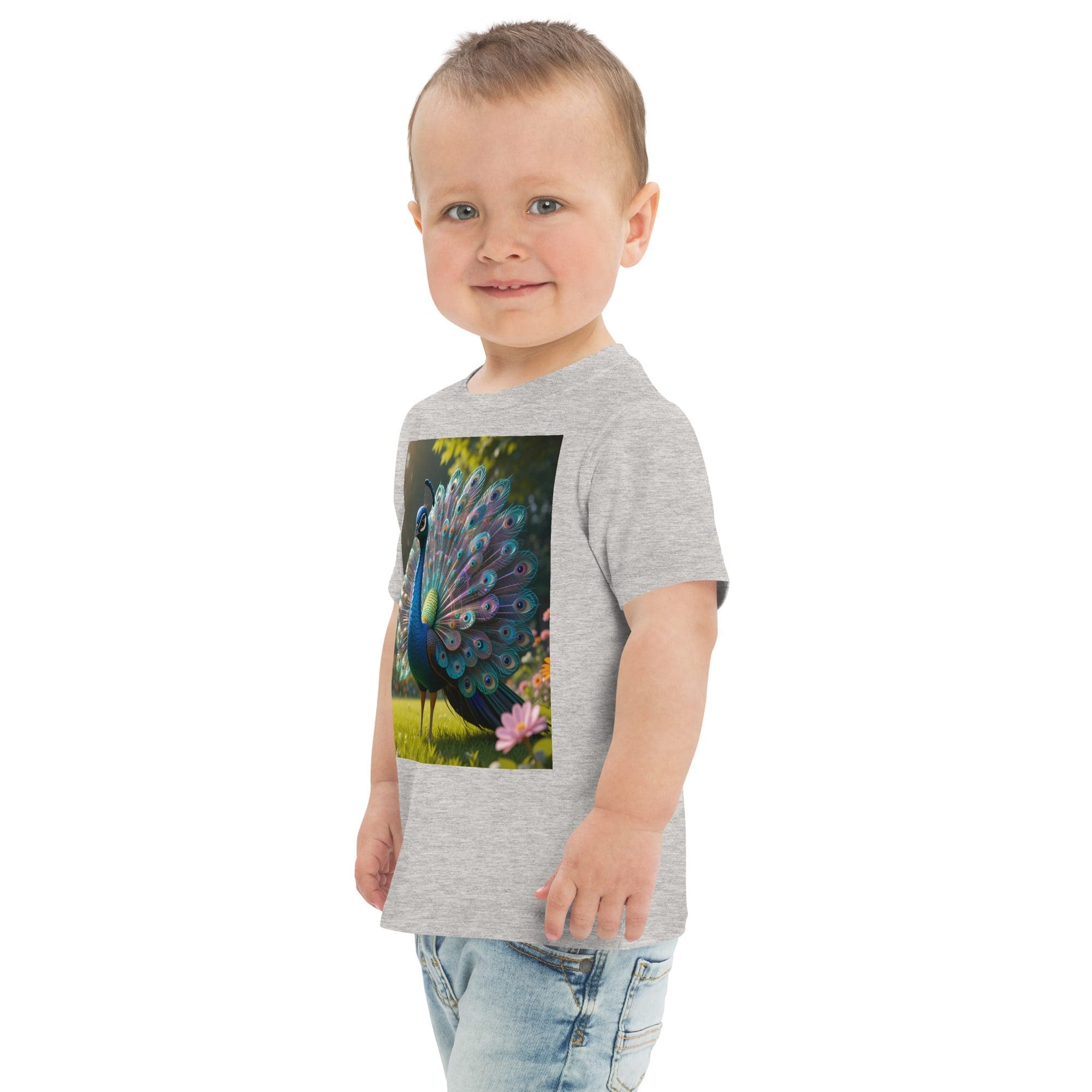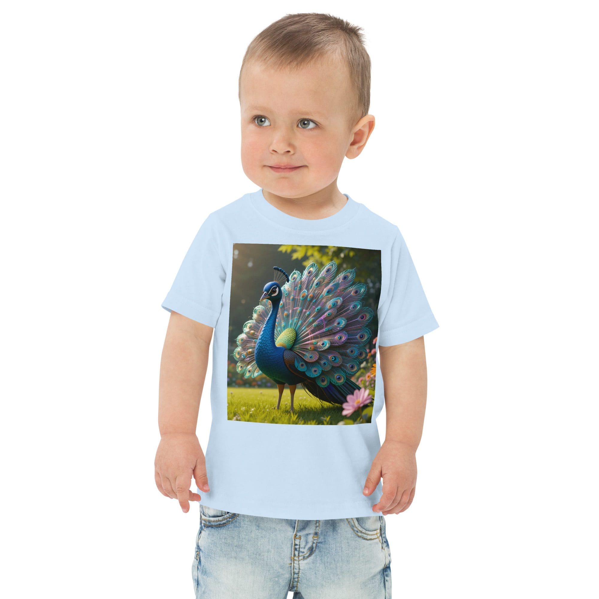Shine into adventure and discovery with our Peacock-inspired Organic Cotton Toddler T-Shirt | playful, durable, and made for park days and big imaginations.