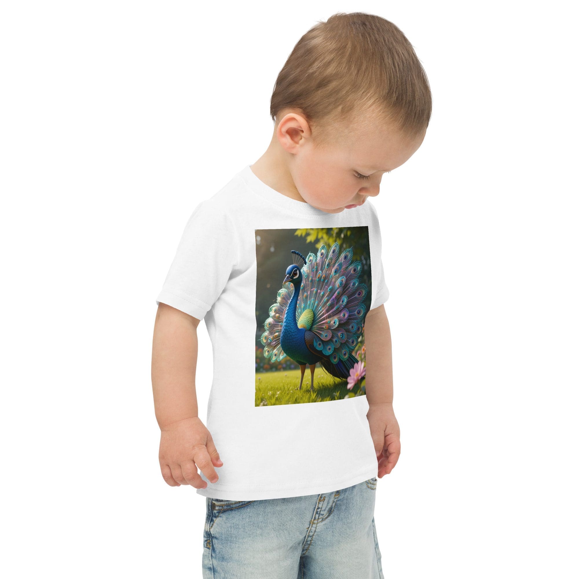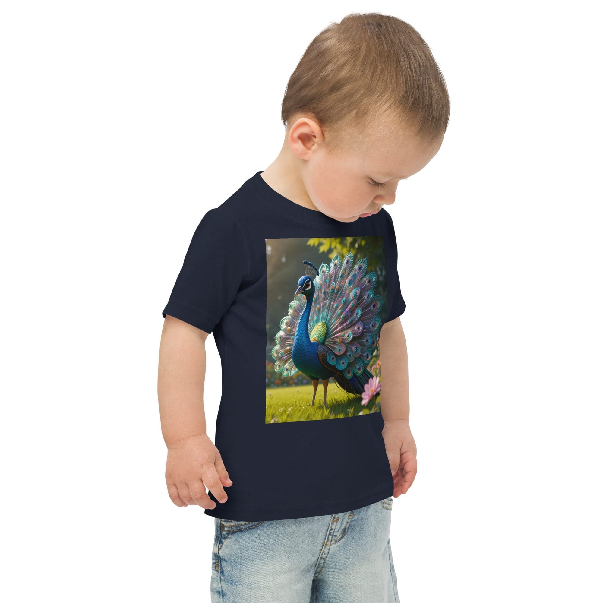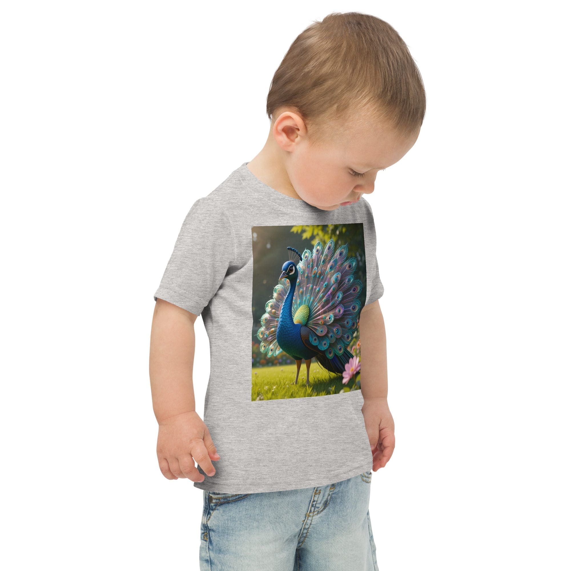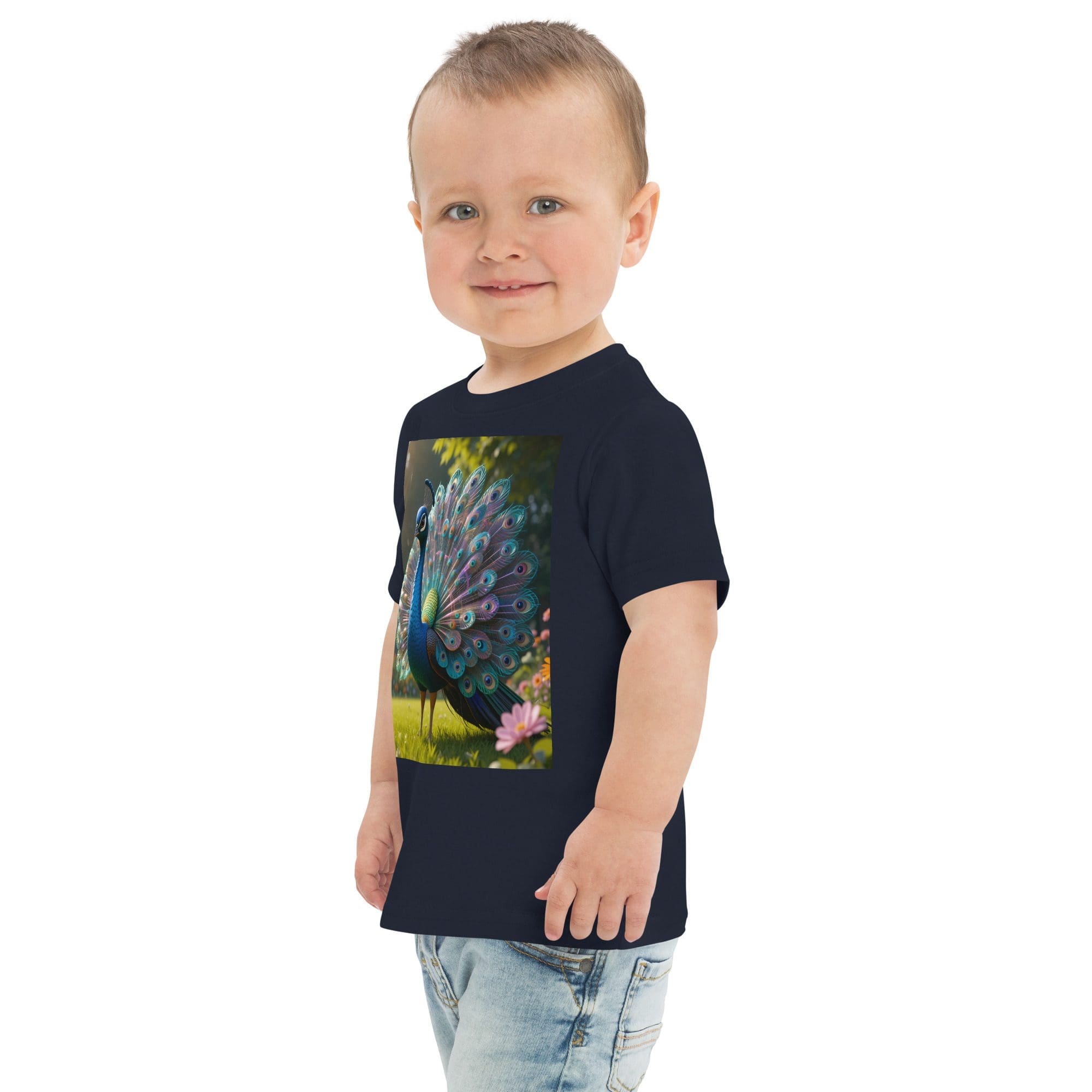 Shine into adventure and discovery with our Peacock-inspired Organic Cotton Toddler T-Shirt | playful, durable, and made for park days and big imaginations.