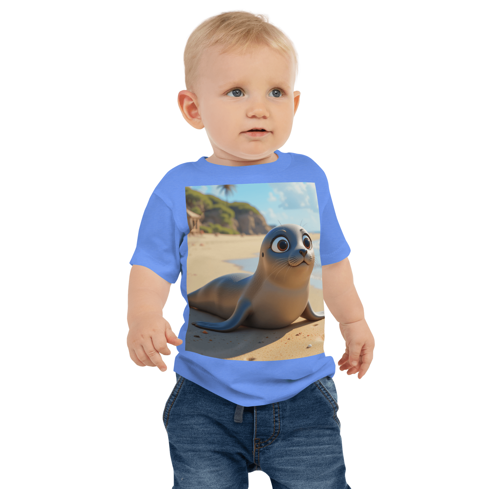 Swim into comfort and joy with our Seal-themed Organic Cotton Baby T-Shirt | soft, breathable, and gentle on delicate skin. A thoughtful, eco-friendly gift for growing little ones.