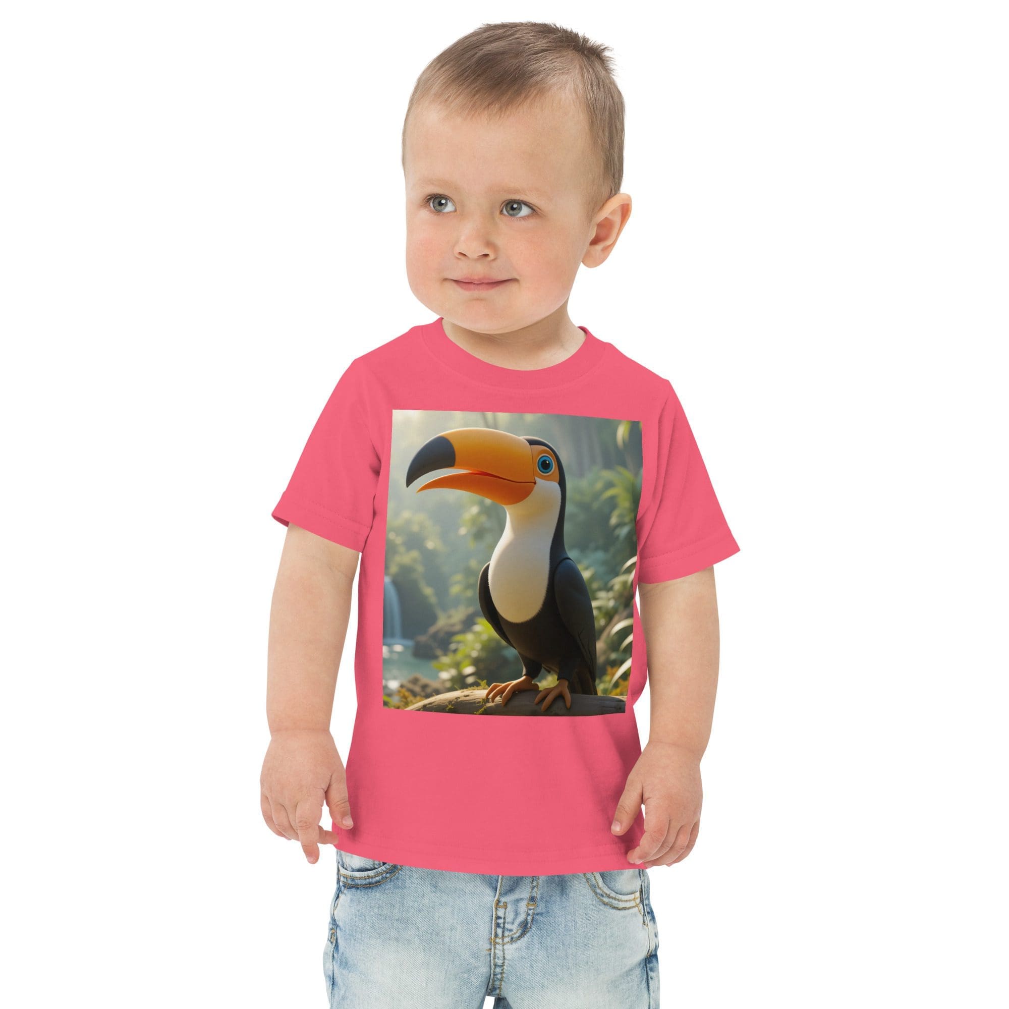Fly into adventure and discovery with our Toucan-inspired Organic Cotton Toddler T-Shirt | playful, durable, and made for park days and big imaginations.