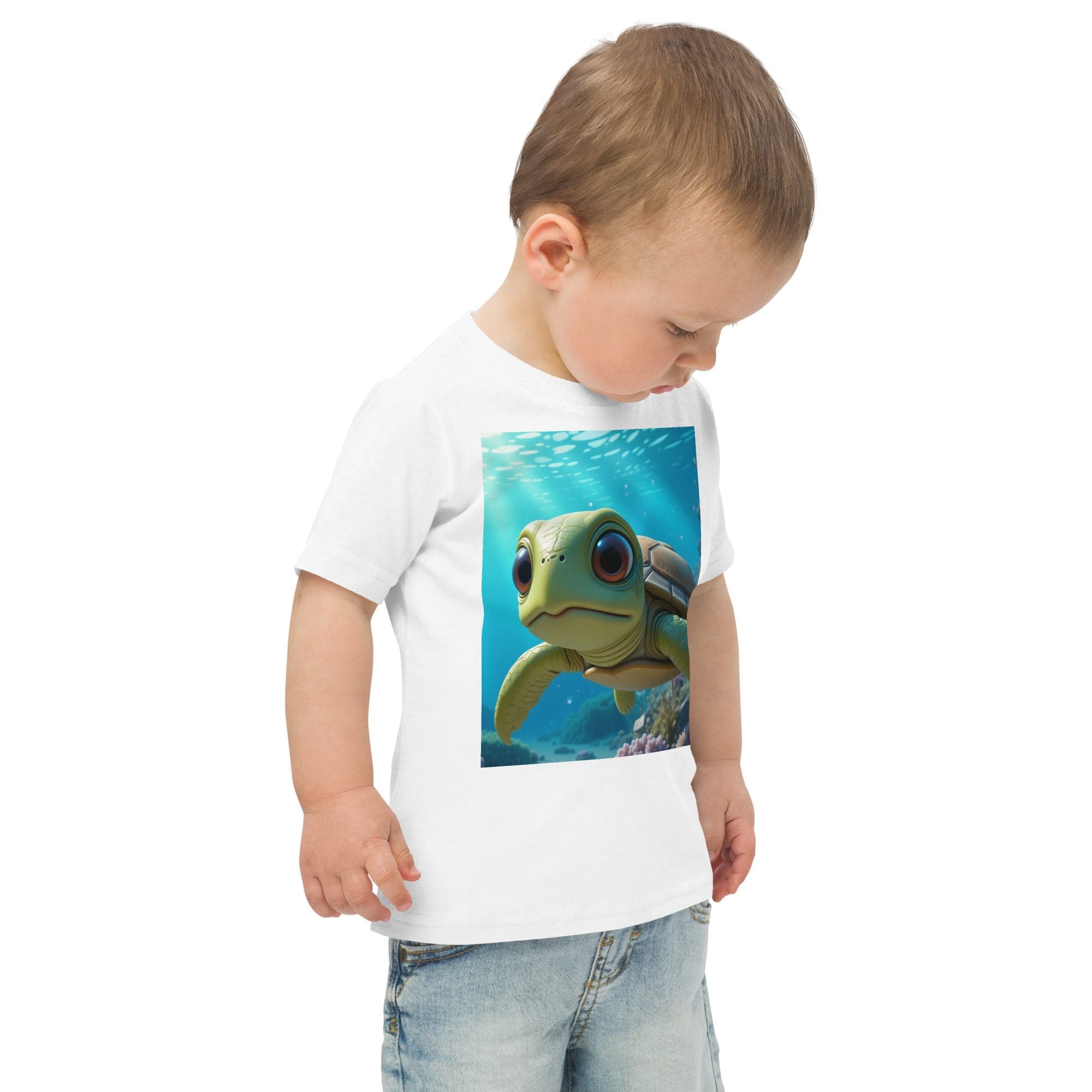 Swim into adventure and discovery with our Turtle-inspired Organic Cotton Toddler T-Shirt | playful, durable, and made for park days and big imaginations.