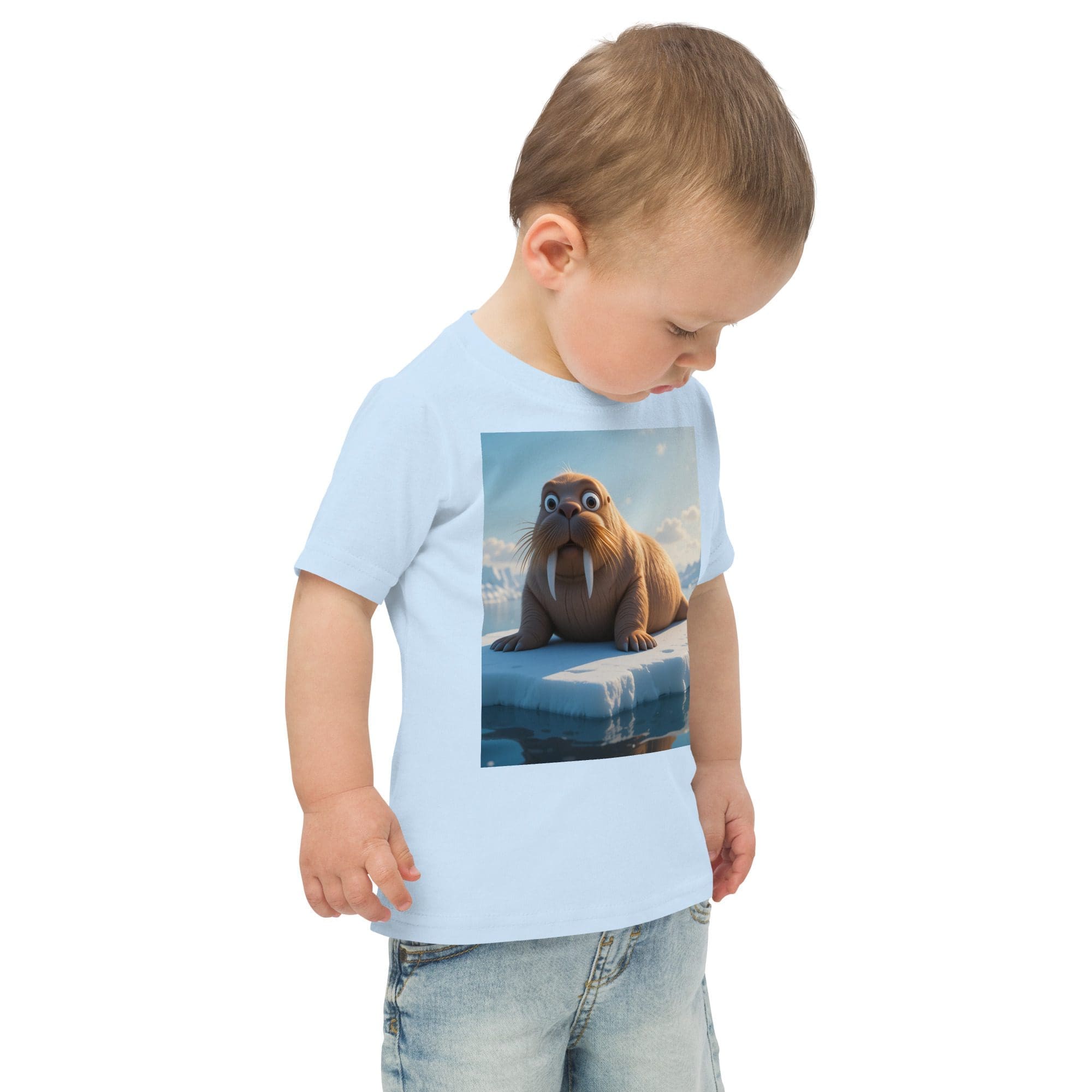 Swim inot adventure and discovery with our Walrus-inspired Organic Cotton Toddler T-Shirt | playful, durable, and made for park days and big imaginations.