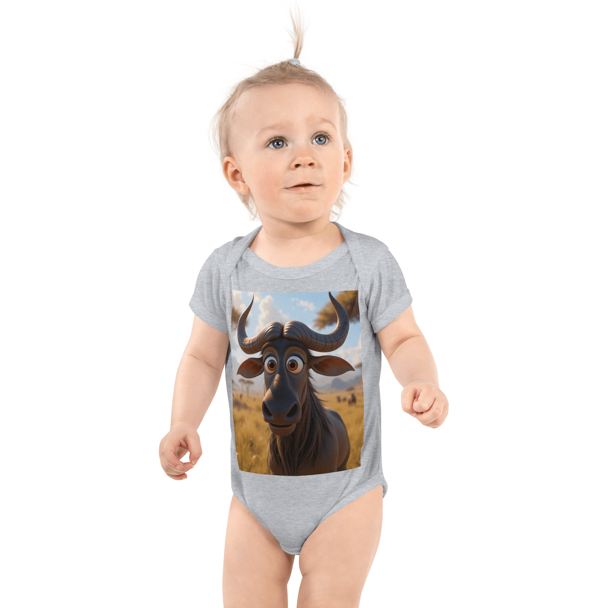 Run into adventure with our Wildebeest-inspired Organic Cotton Bodysuit | crafted from soft, breathable Organic Cotton for newborns to toddlers. Eco-friendly, gift-ready, and a thoughtful baby shower gift.