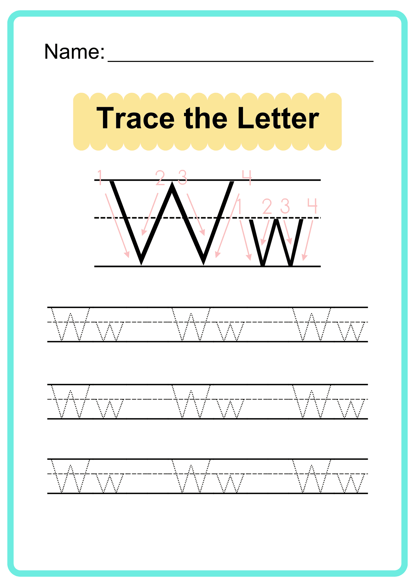 Help young learners explore the alphabet with these free printable worksheets for tracing the letter W. This activity includes both uppercase and lowercase versions of the letter, along with direction arrows reinforce early letter formation.