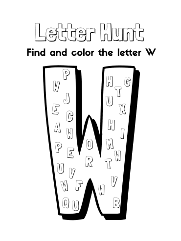 Print this coloring sheet for the letter W. Give children a sheet with the letter W written on it and ask them to draw or color things that start with W.You can also provide stickers or cutouts of W-words to paste on their sheet.