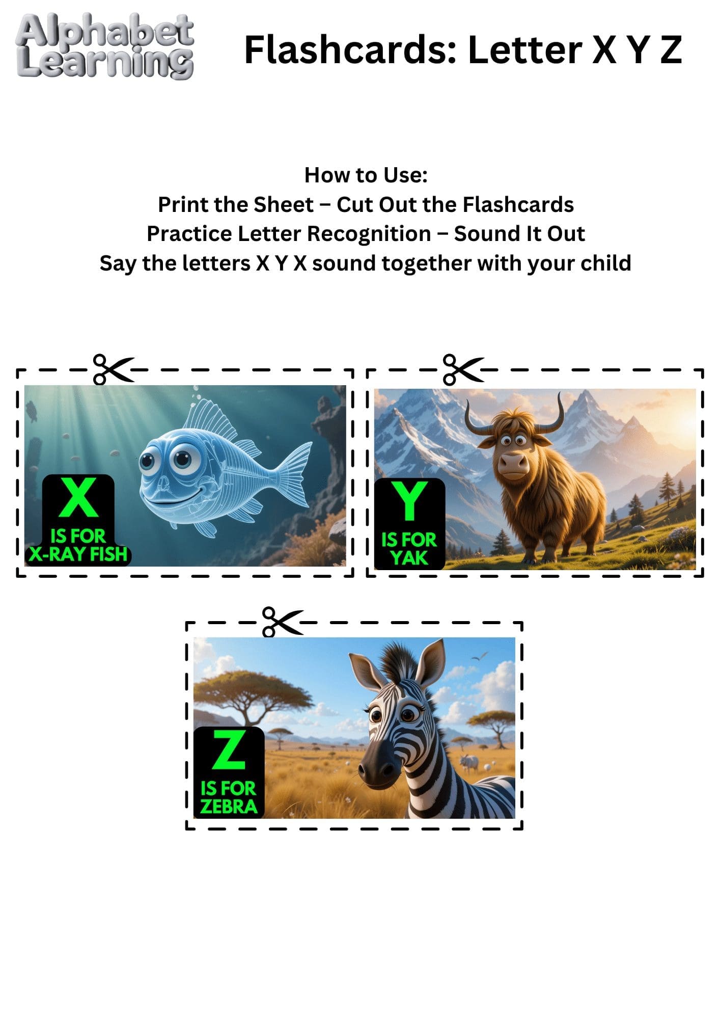 The letters X, Y, and Z may be at the end of the alphabet, but they are just as important to learn! X is often found in words like “xylophone” and “box,” while Y appears in “yellow” and “yarn.” Z makes a fun buzzing sound in words like “zebra” and “zipper.” Learning these letters helps children recognize patterns, expand their vocabulary, and strengthen their reading skills. Let’s explore how X, Y, and Z look, sound, and where we can find them in everyday life!
